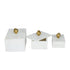 Set of 3 Marble Decorative Box with Textured Aluminum Knobs Set of 3 9", 7", 6"W