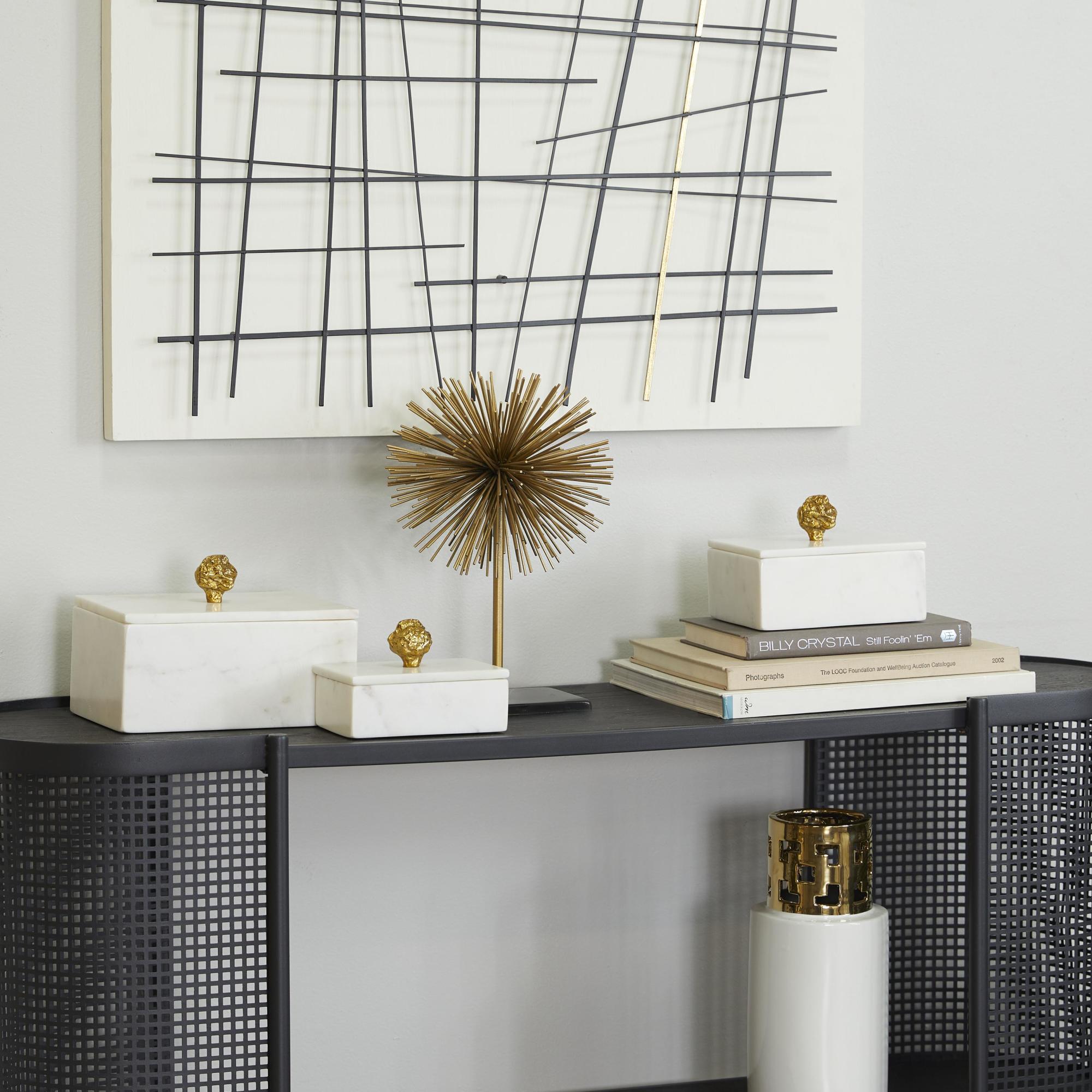•Crafted from durable marble and aluminum, this decorative box set promises longevity and robustness