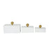 •This marble set of 3 boxes showcases a sleek finish with distinctive marble streaks, complete with spacious storage, detachable lids, and abstract handles