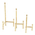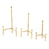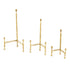 Put your show art and signs on display with this charming easel. Durable and sturdy, this easel lets you display your favorite things with ease, and with out overshadowing your piece. Place the set of 3 tabletop easel on your desk, shelf, or mantel to add sophistication to your artwork or photos on display. This item ships in 1 carton. Suitable for indoor use only. This item ships fully assembled in one piece. Maximum weight limit is 5 lbs. Made in India. This iron tabletop easel comes as a set of 3. Modern style.