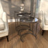 •Each table in the contemporary set of 3 small tables has been meticulously crafted using bent metals and glass tops for a unique design