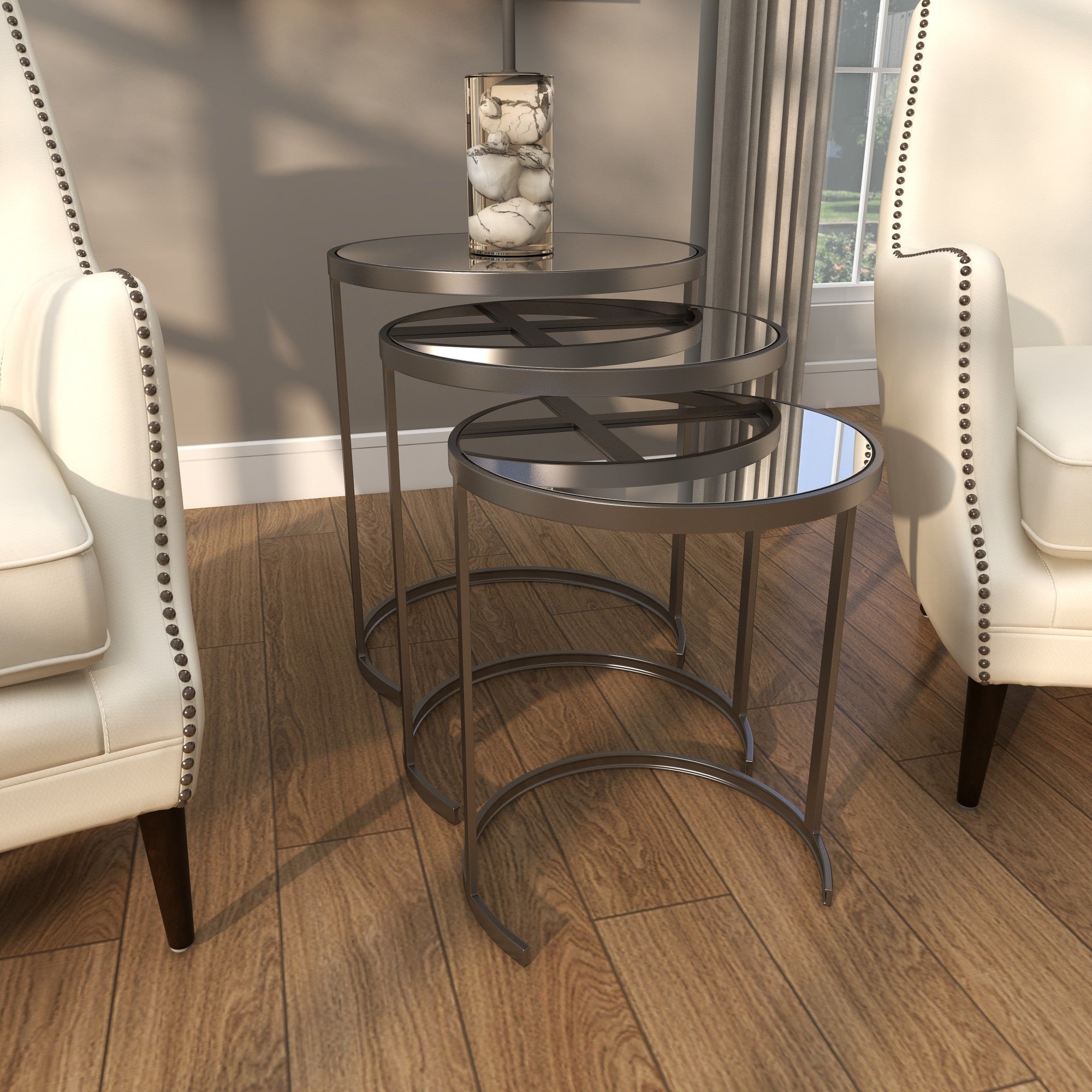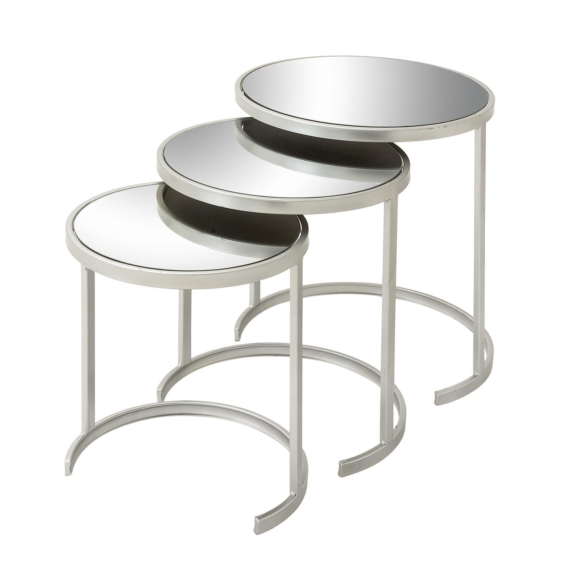 Bring a finishing touch to your home with an inviting appeal with this beautifully crafted accent table. A compact friendly table providing you with additional surface storage space any where in your home. These set of 3 end tables can be perfectly positioned near upholstered sofas or tufted beds, adorned with books or potted plants to enhance their glamour. This accent table has a completely finished back. This item ships in 1 carton. Suitable for indoor use only. This item ships fully assembled in one piece. Maximum weight limit is 100 lbs. Made in India. This metal end table comes as a set of 3. Contemporary style.