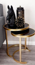 Set of 3 Metal Round Nesting Side End Accent Table with Black Glass Top