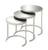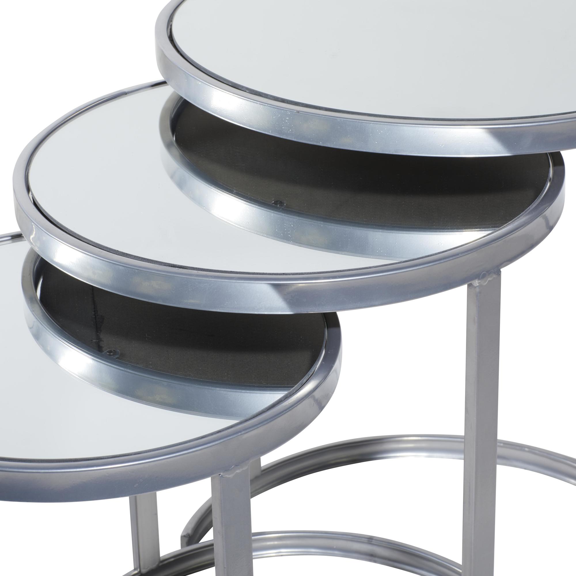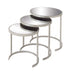 •The metal set of 3 accent tables features an open style structure with a C-shaped base, allowing the tables to next inside each other