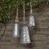 •These galvanized decorative bells for holidays have a narrow cone shape with ring hangers and knotted rope