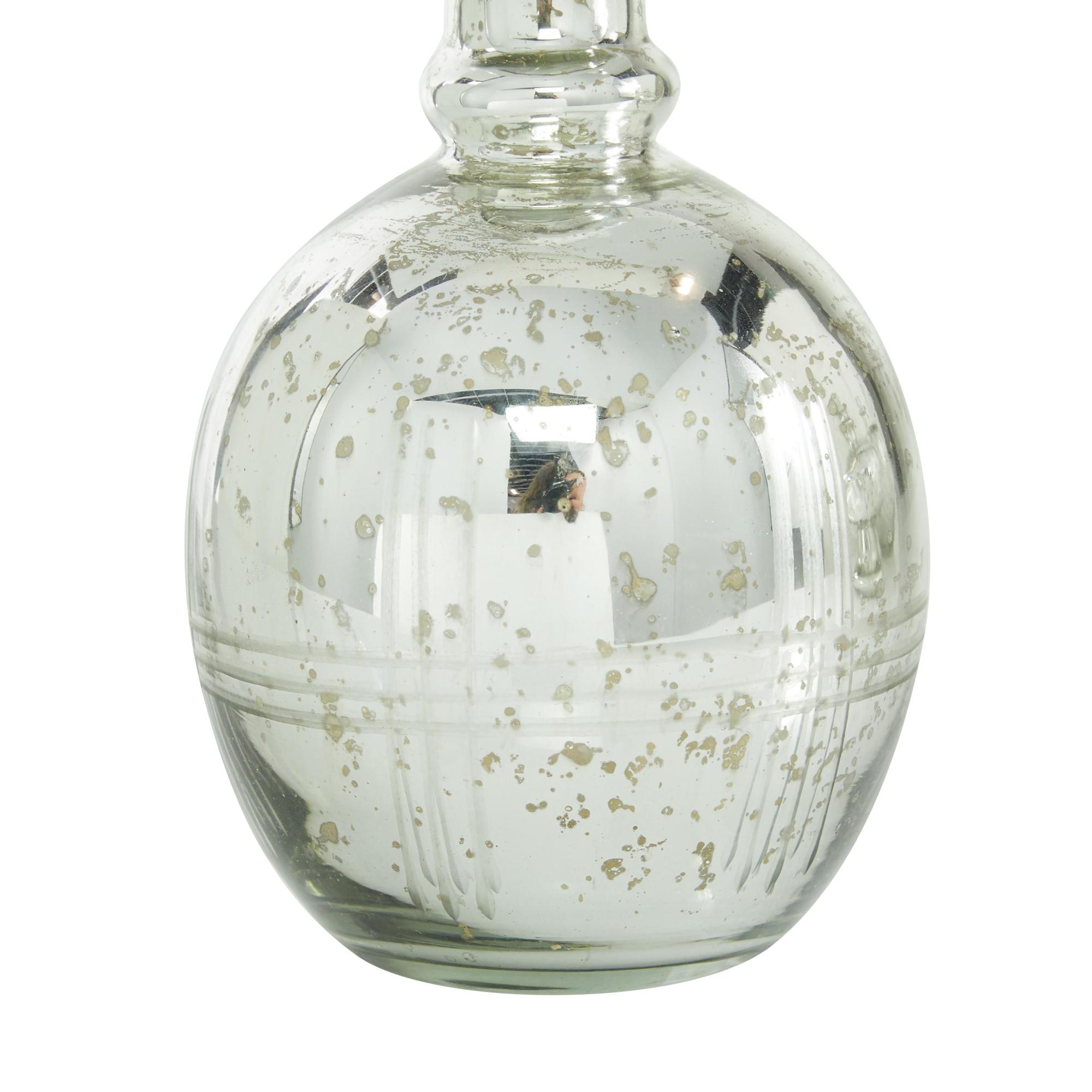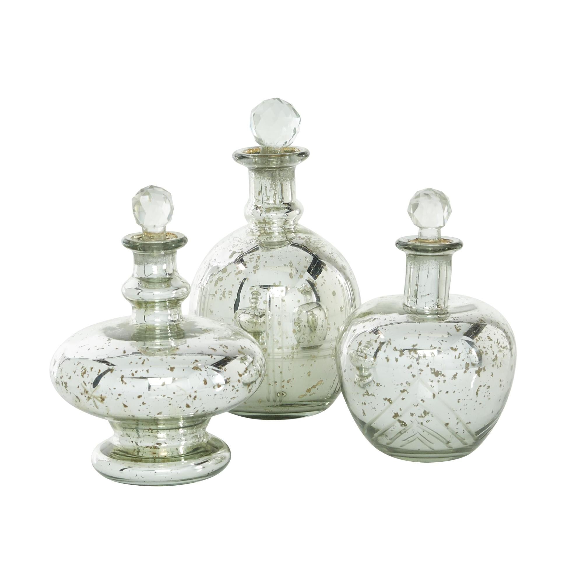 Set of 3 Silver Glass Living Room Decorative Jars with Crystal Stoppers