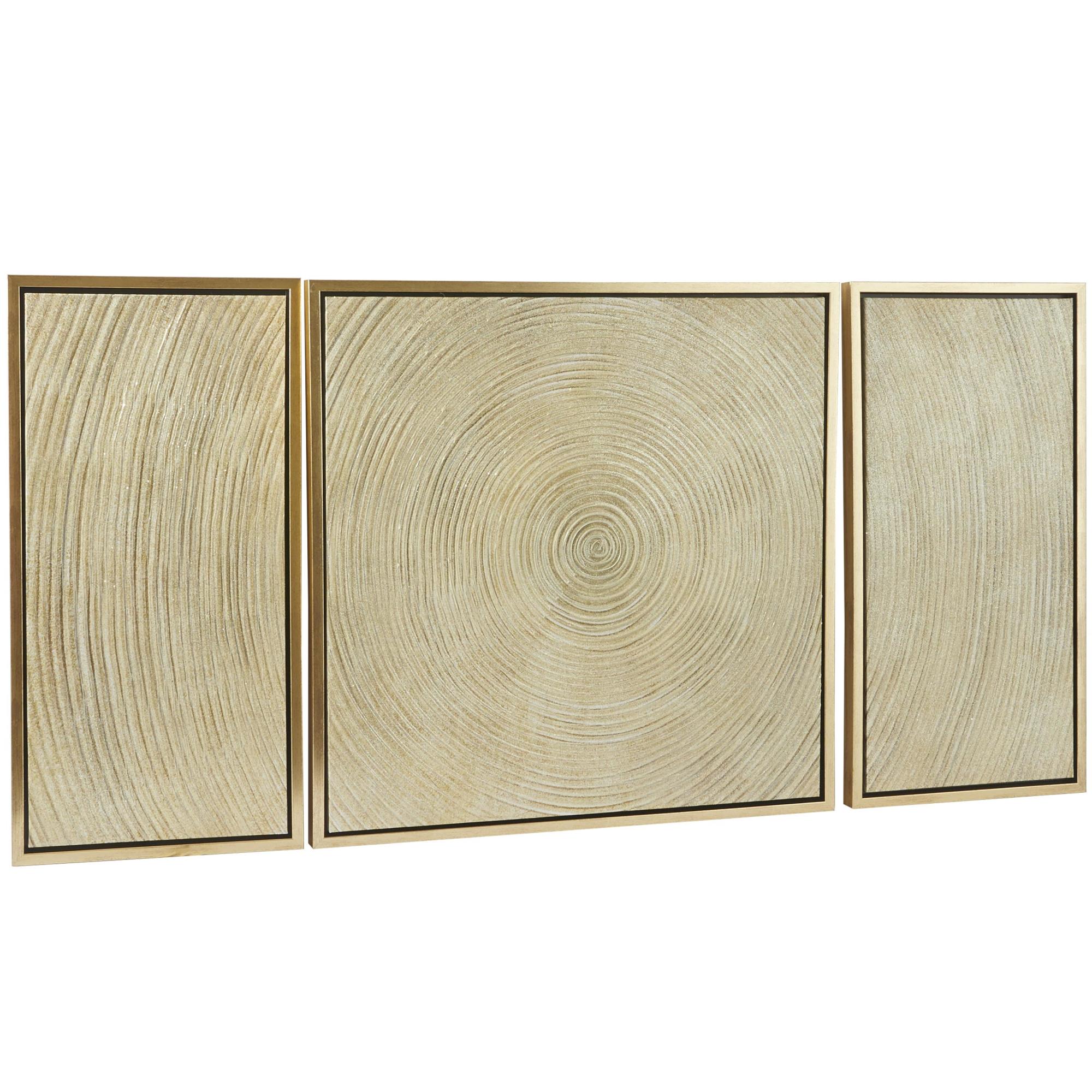 Set of 3 Starburst Gold Canvas Ripple Living Room Framed Wall Art with Gold Frame