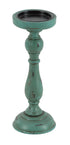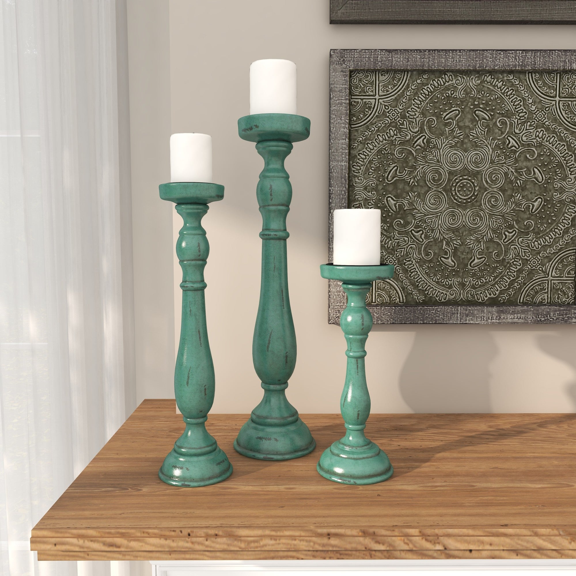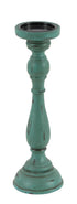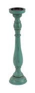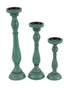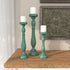 Set of 3 Teal Wooden Distressed Turned Decorative Candle Holder