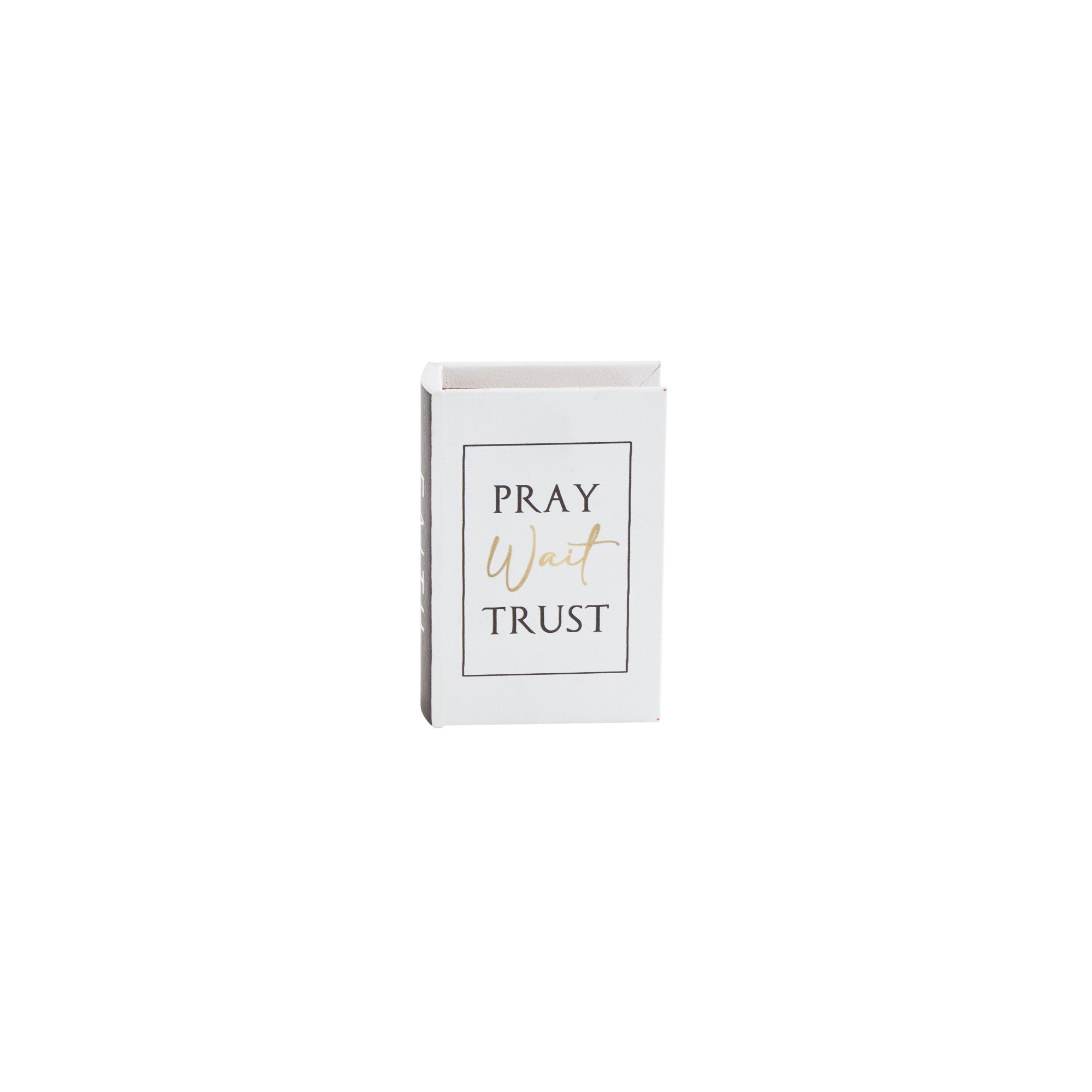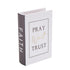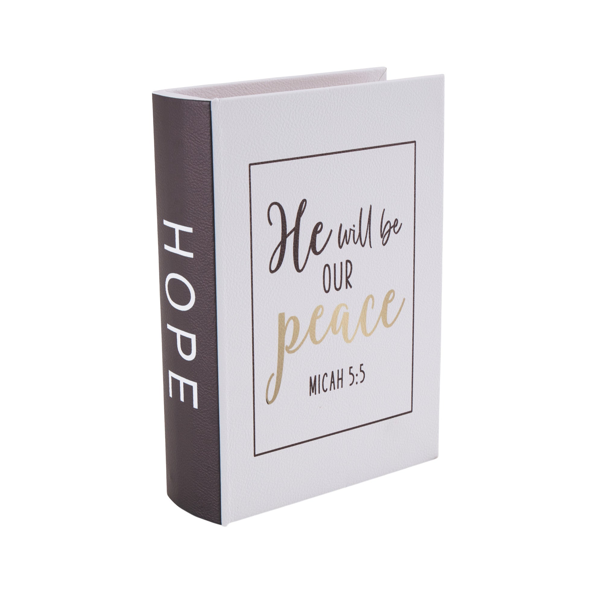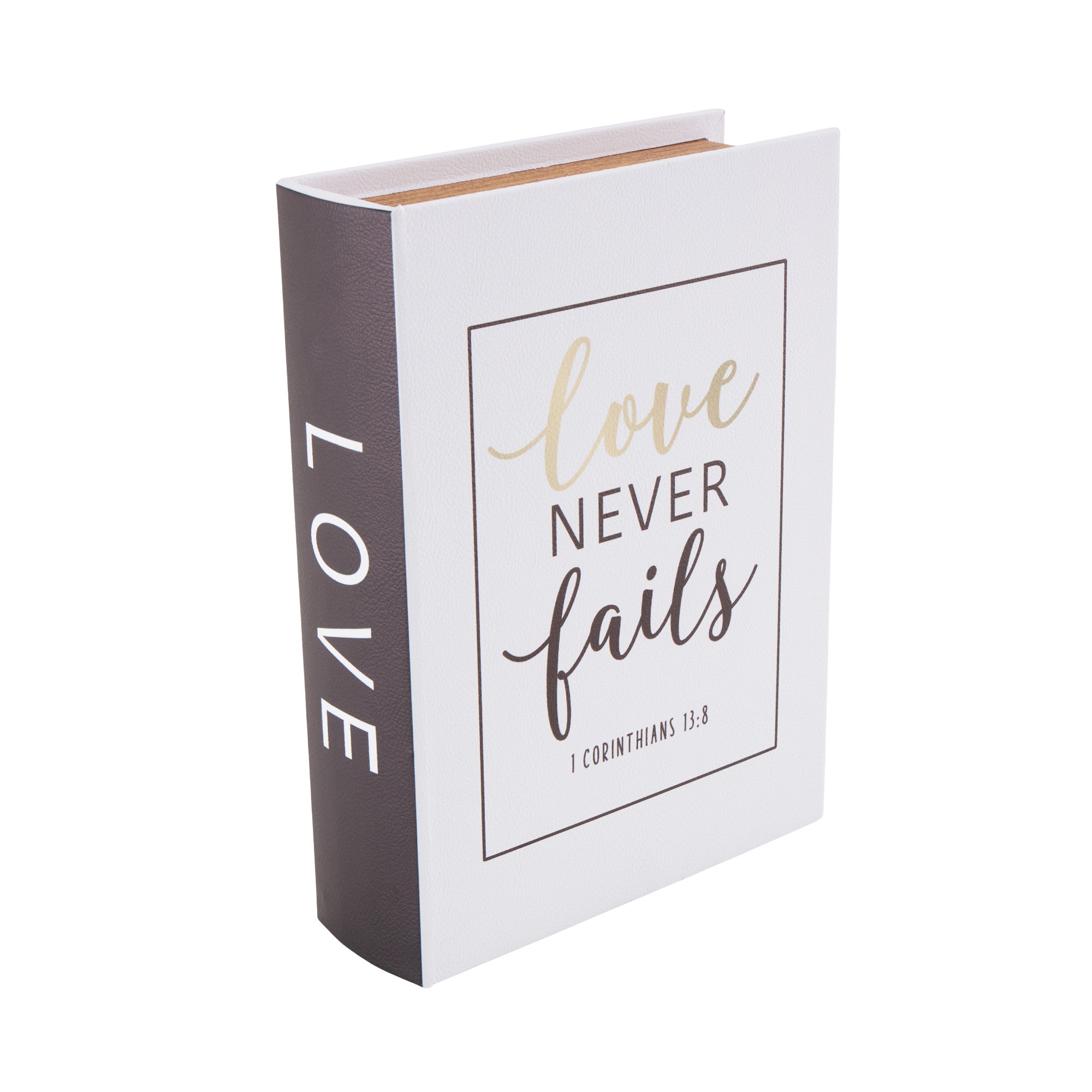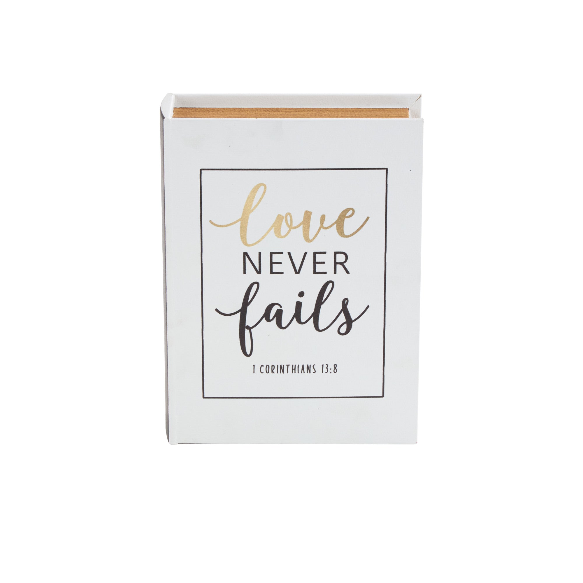 •These matte keepsake boxes maintain a hardbound rectangular book silhouette featuring charming "LOVE," "HOPE," "PRAY" text while offering hollow spaces for storing objects