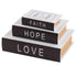Set of 3 Text White Faux Leather Love, Hope, Faith Faux Book Storage Decorative Box
