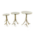 gold set of 3 end tables can be used as side tables in your living room or bedroom, providing both functionality and aesthetic appeal. This item ships in 1 carton. Suitable for indoor use only. This item ships fully assembled in one piece. Maximum weight limit is 50 lbs. Made in India. This aluminum end table comes as a set of 3. Contemporary style.
