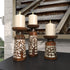 •Coastal set of 3 candle holders for home decor is intricately carved to create beautiful botanical patterns on each piece