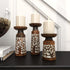 Set of 3 Floral Mango Wood Handmade Carved Pillar Decorative Candle Holder with Whitewashed Cream Backing Set of 3 10", 8", 6"H