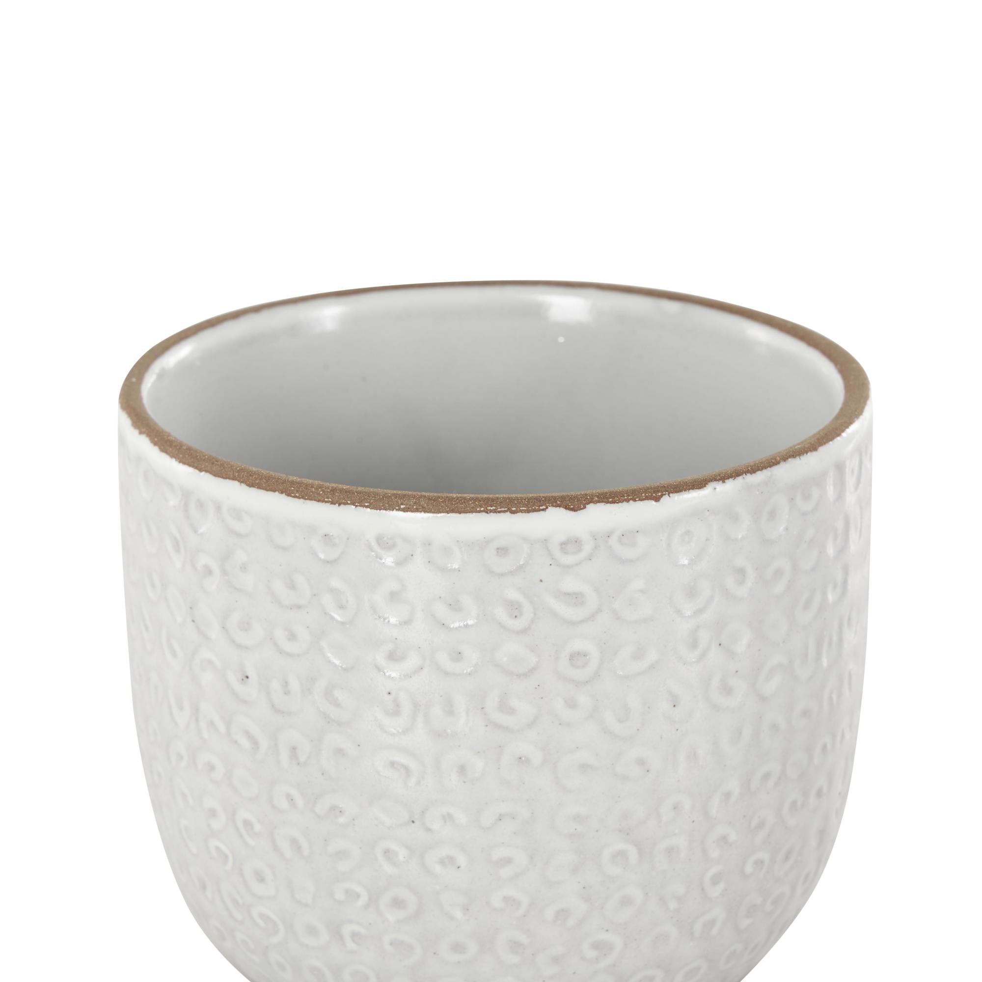 •Stoneware set of planters features an abstract circle pattern with accents, adding a touch of sophistication to your space