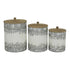 •The metal set of 3 decorative jars features round wooden lids, each adorned with a tastefully designed knob finial, providing both storage solutions and visual interest