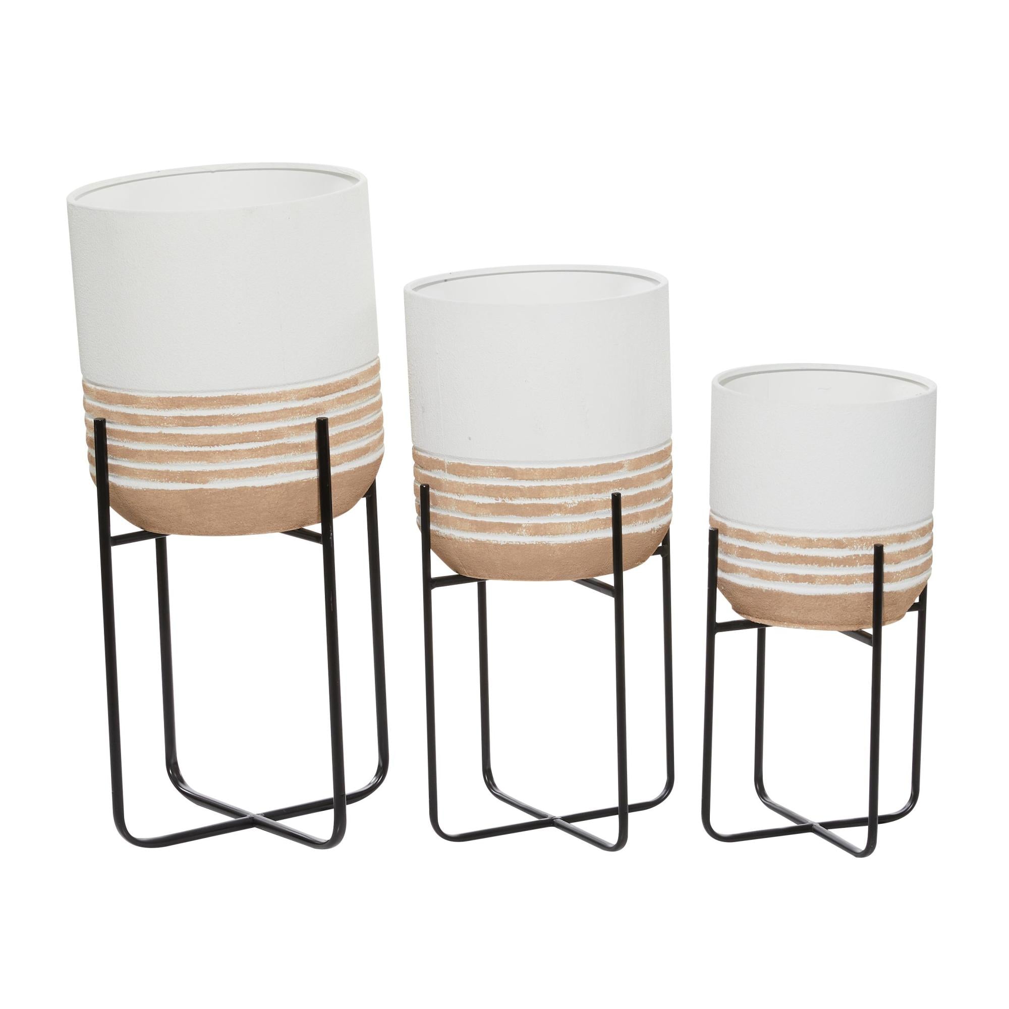 Set of 3 White Metal Indoor Outdoor Planter with Removable Stand