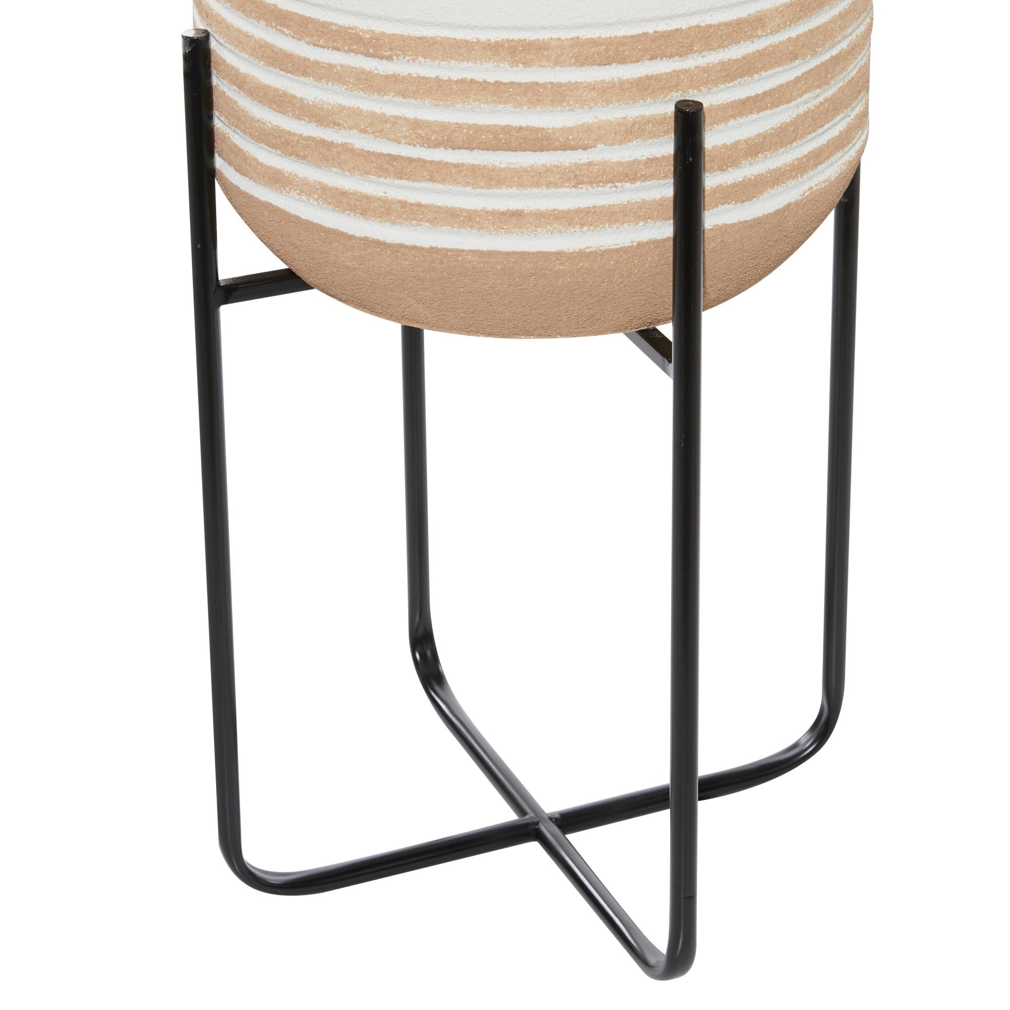 Place your favorite plants inside this striped set of 3 large planter pots and use them both indoors and outdoors, adding an element of nature to your space. This item ships in 1 carton. Please note that this item is for decorative purposes only and is not food safe. Iron planter makes a great gift for any occasion. Suitable for indoor and outdoor use. This item ships fully assembled in one piece. Maximum weight limit is 5 lbs. Planters do not have drainage holes but they are not watertight. This iron plant pot comes as a set of 3. Farmhouse style.