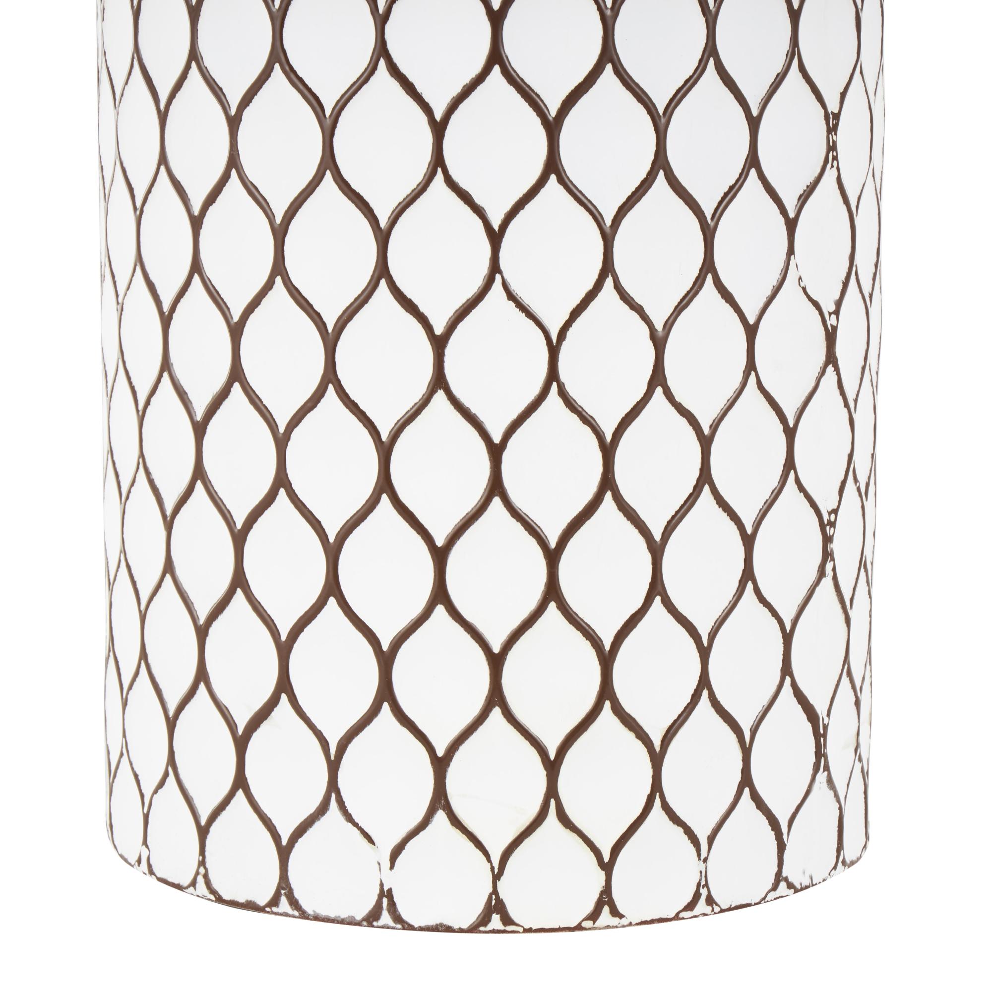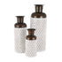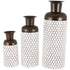Set of 3 White Metal Tall Teardrop Shaped Decorative Vase with Brown Trumpet Tops