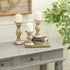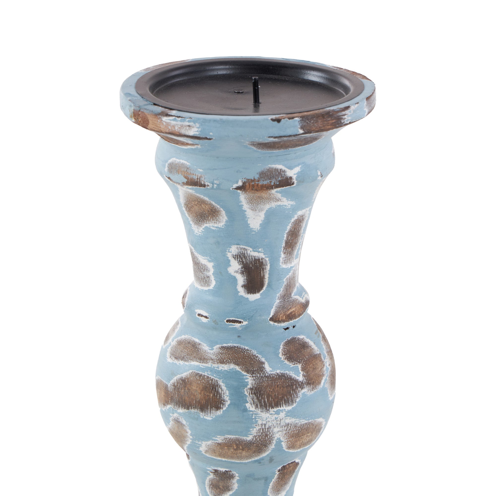 •Each piece in this traditional set of 3 candle holders for home decor is intricately sculpted from mango wood and given a distressed finish to evoke a country cottage aesthetic