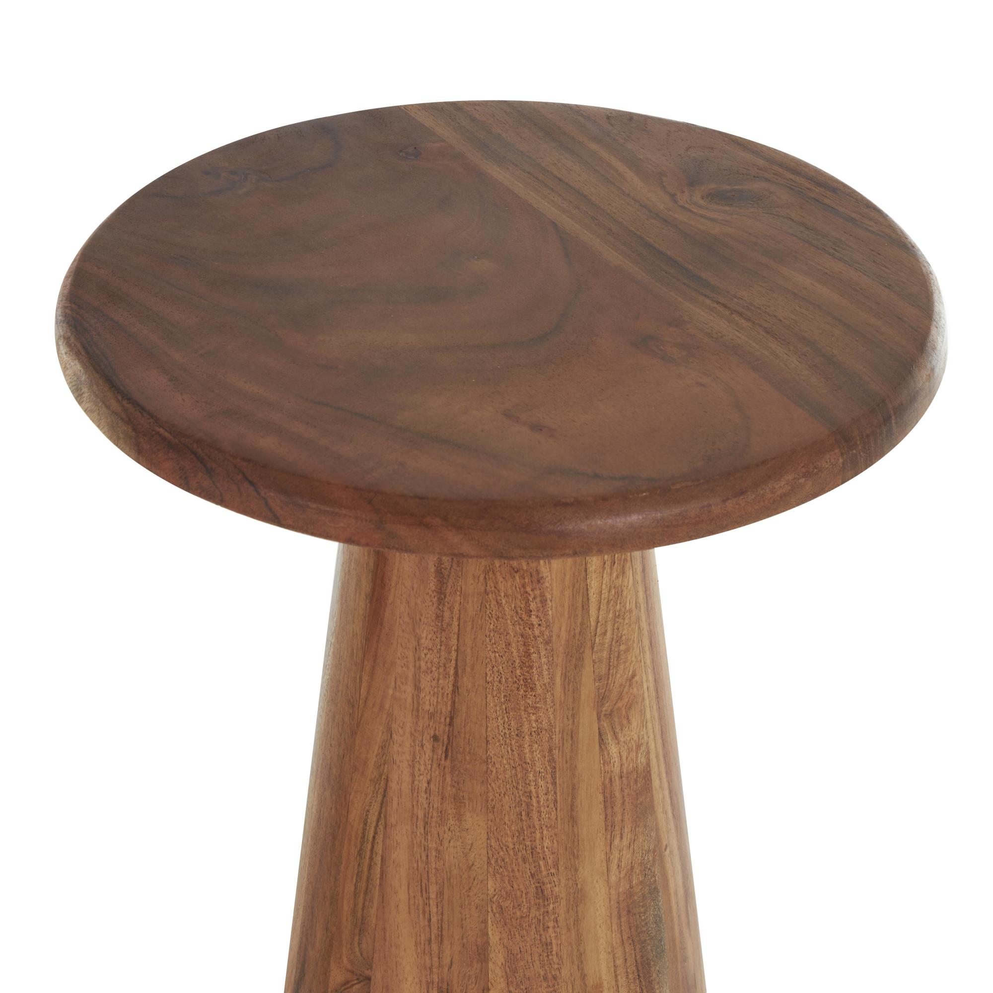 Natural pedestal set of 3 end tables can be used in various rooms such as the living room or study, serving as side tables or decorative stands. This accent table has a completely finished back. This item ships in 1 carton. Suitable for indoor use only. This item ships fully assembled in one piece. Maximum weight limit is 100 lbs. Made in India. This acacia end table comes as a set of 3. Traditional style.