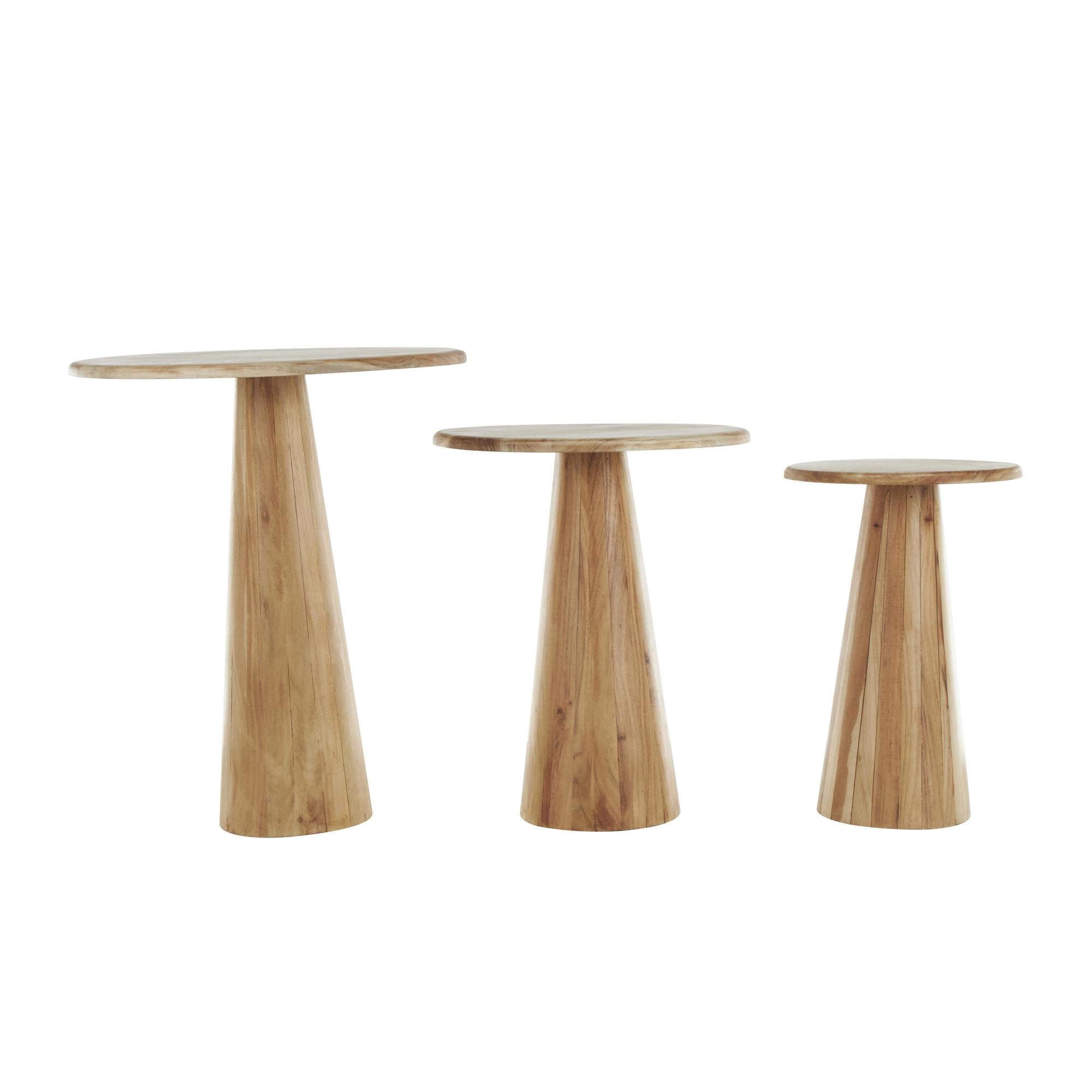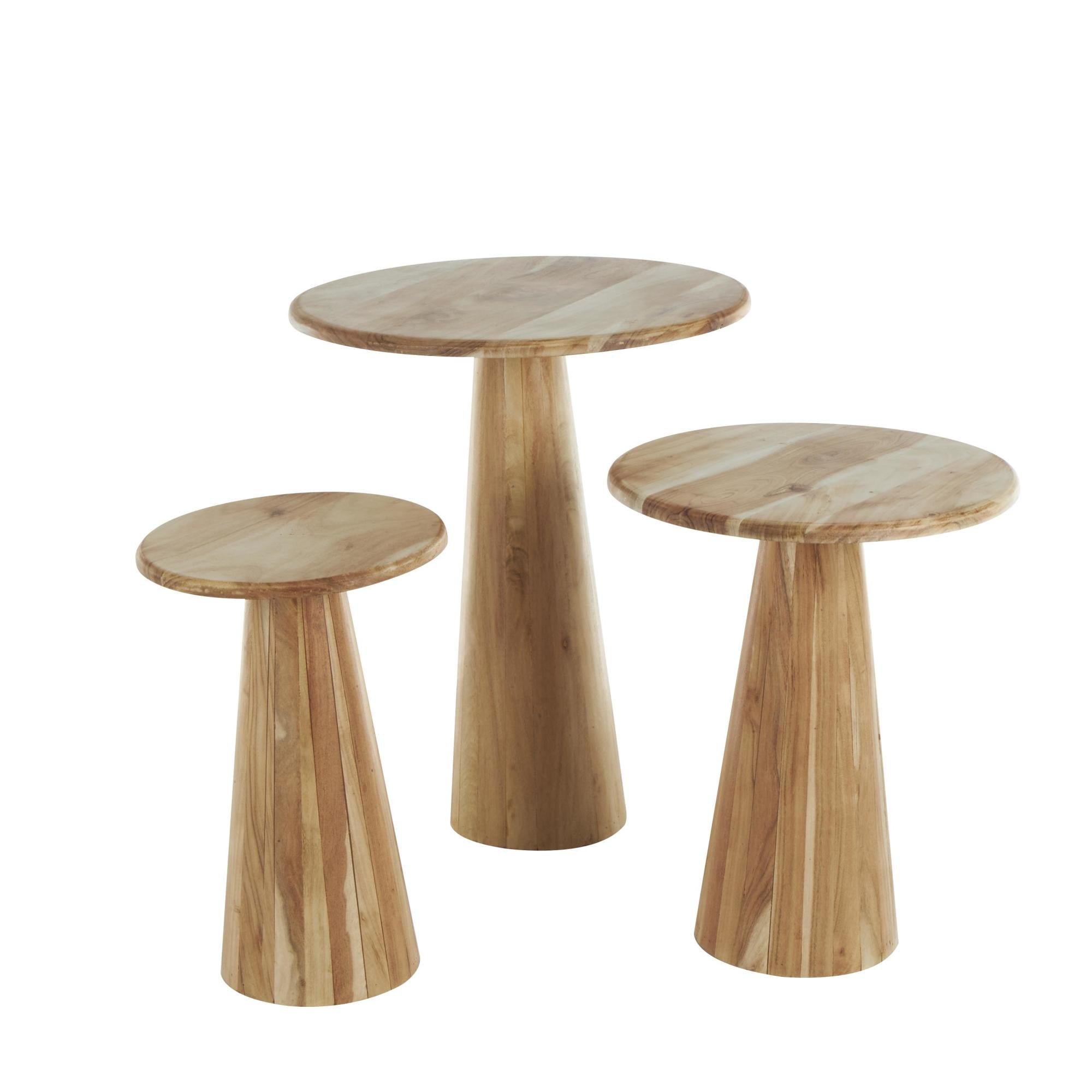 •Natural set of 3 small tables’ solid acacia construction ensures longevity and resilience against daily wear and tear