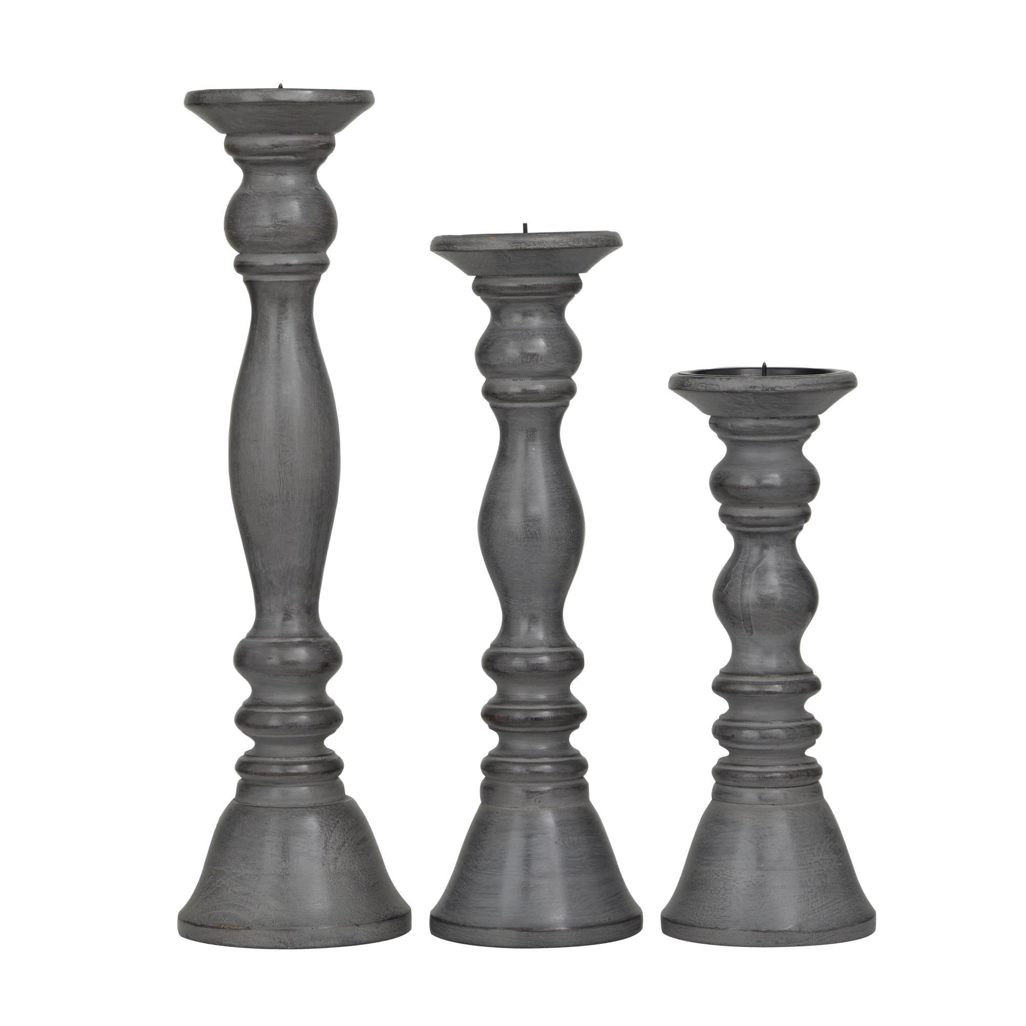 A warm and welcoming way to elevate the look of your tablescape and complement your existing decor. Give your space a radiant illumination with these beautifully crafted candle holders. Enhance your living room by placing this set of 3 candle stand on dining tables or mantels for a sophisticated look. Designed with felt or rubber stoppers at the base that prevent scratching furniture and table tops, as well as sliding around. Can hold 3 pillar candles, not included. This item ships in 1 carton. Wood candle holder makes a great gift for any occasion. Suitable for indoor use only. This item ships fully assembled in one piece. Made in India. This wood candle stand comes as a set of 3. Traditional style.