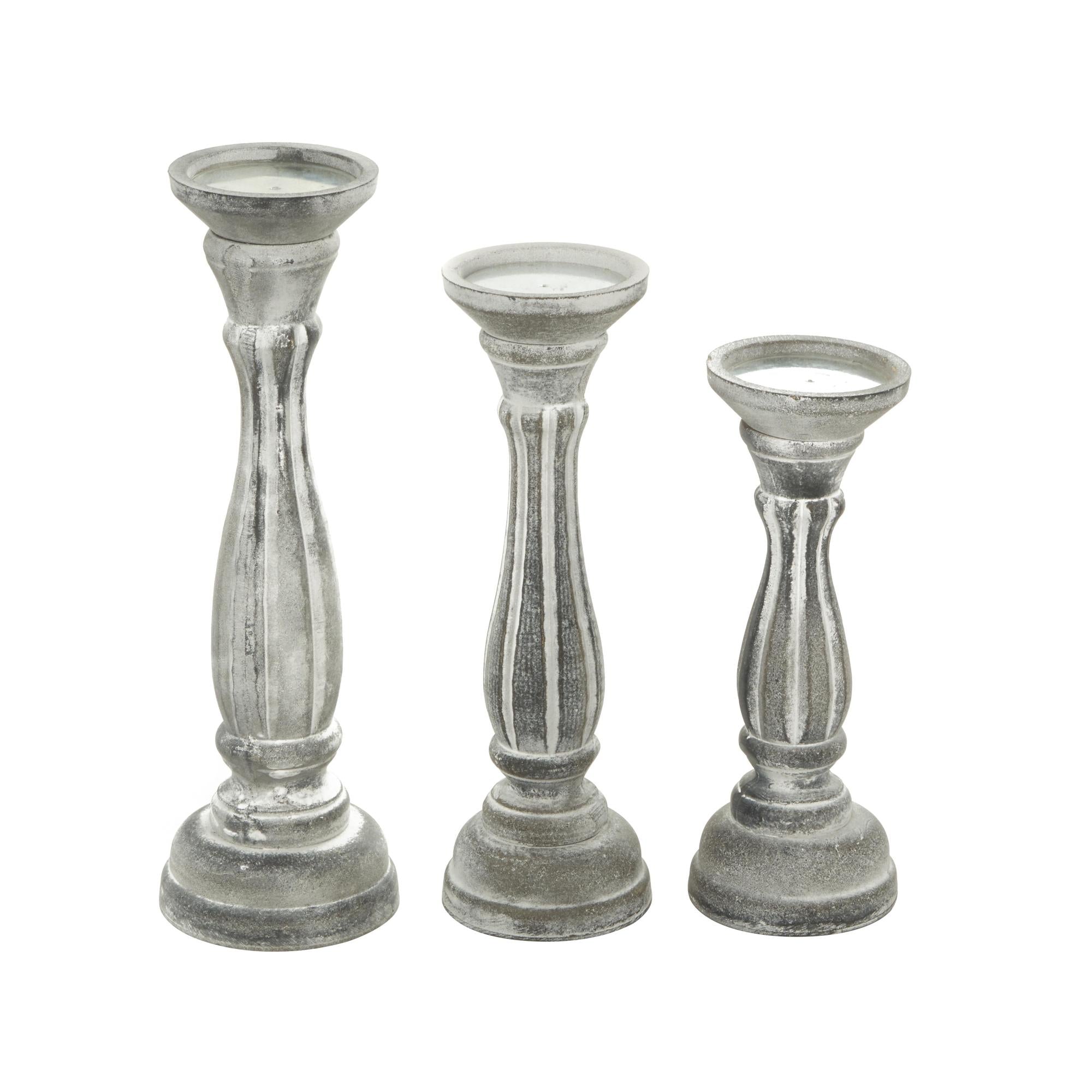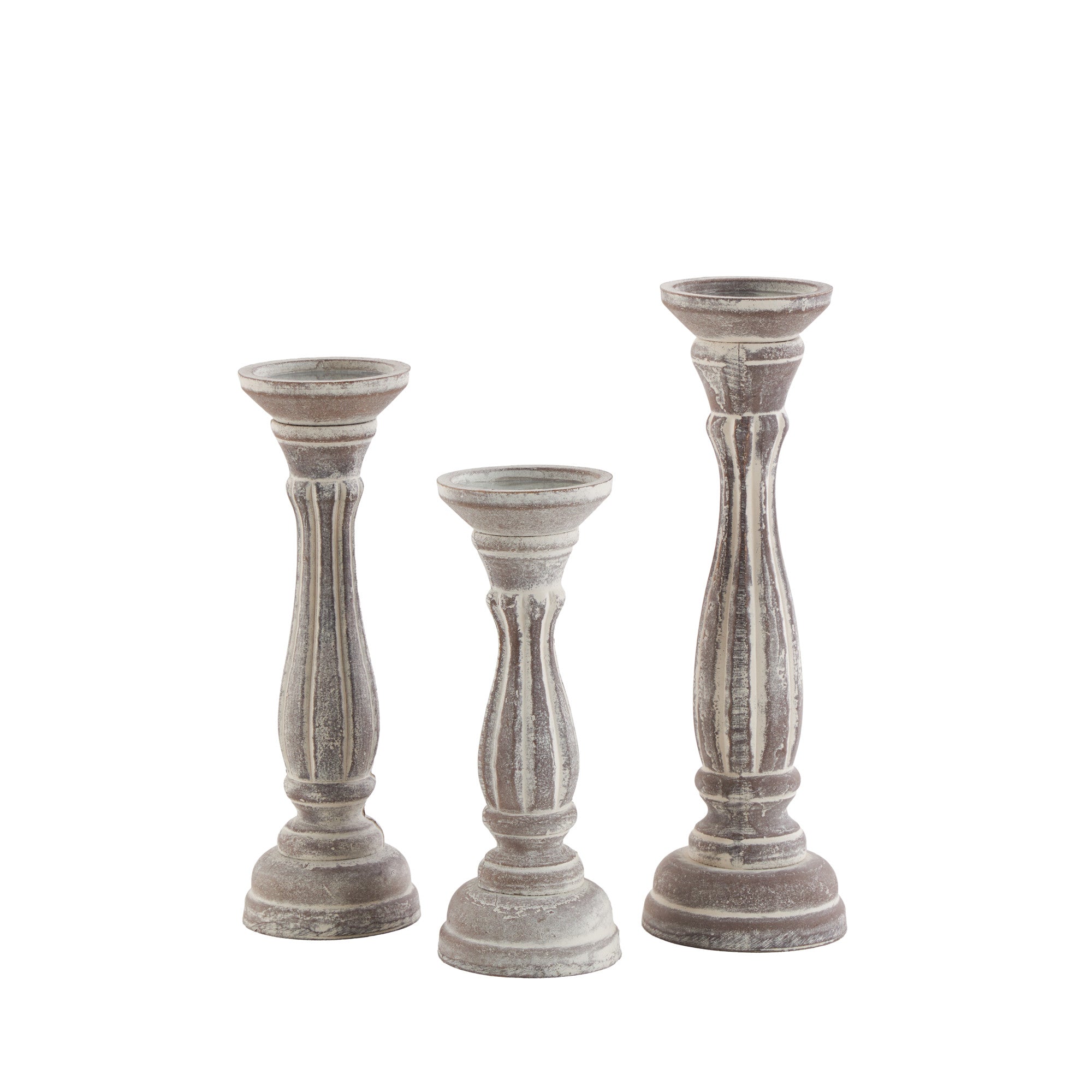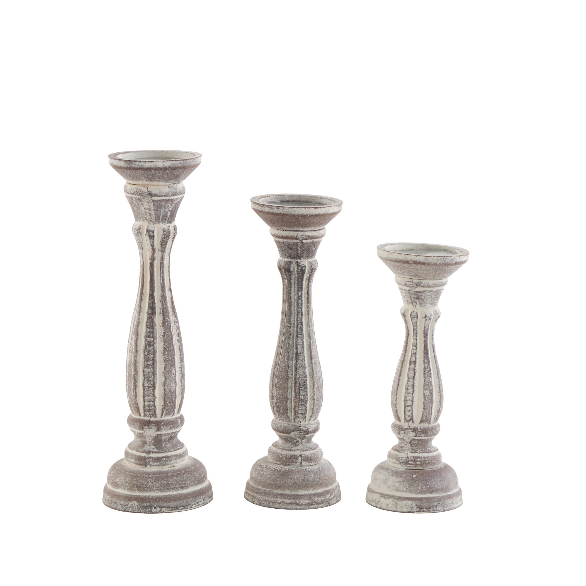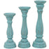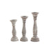 Set of 3 Wooden Distressed Turned Pillar Decorative Candle Holder