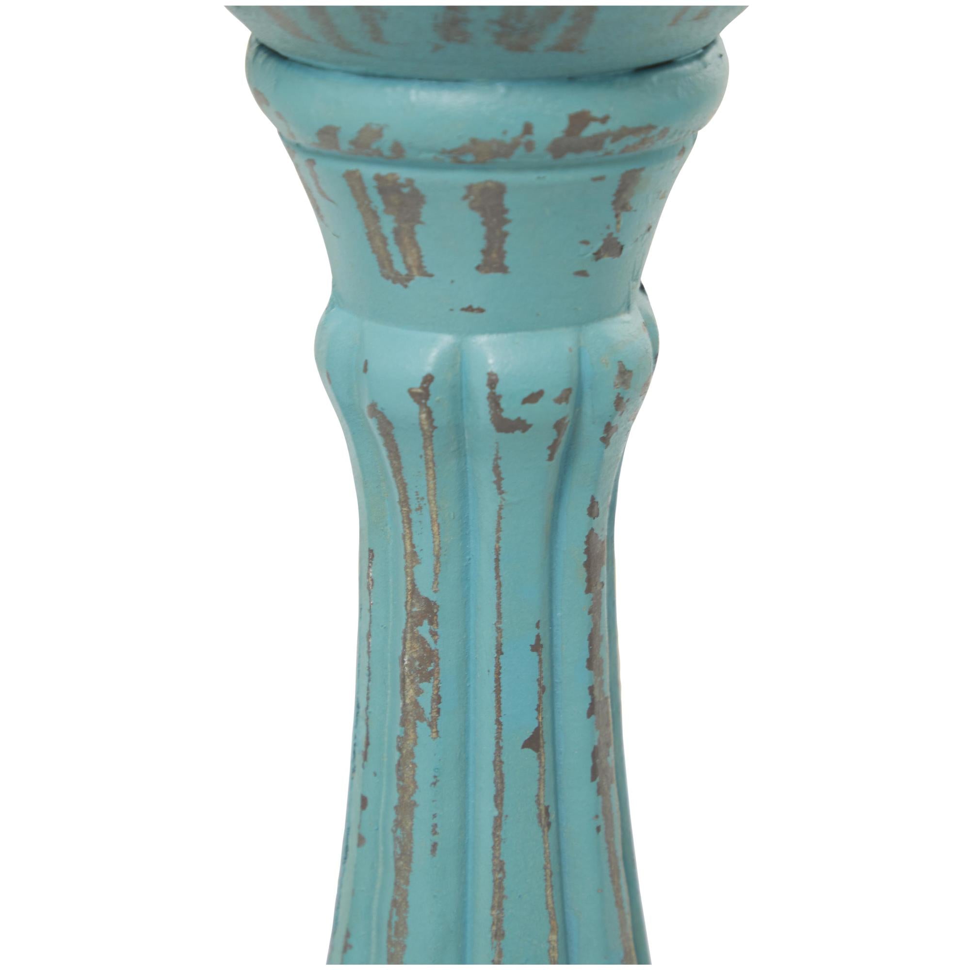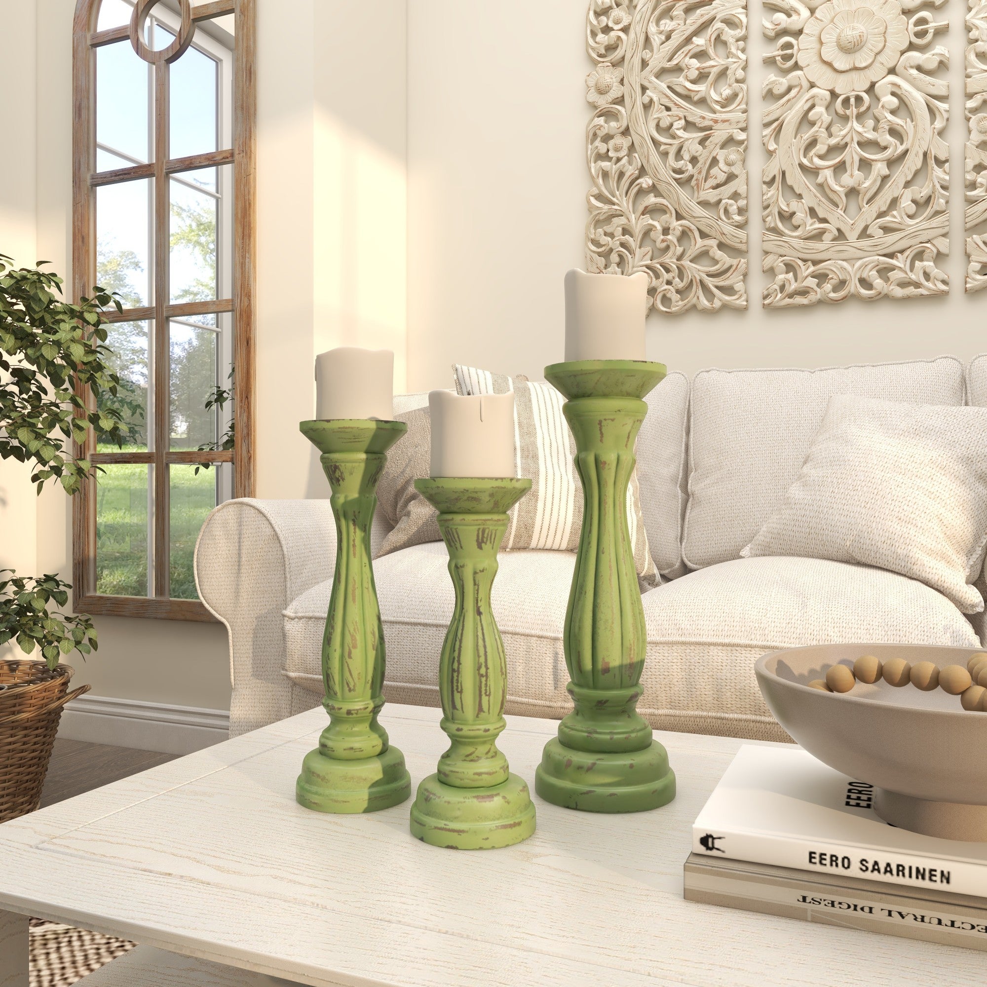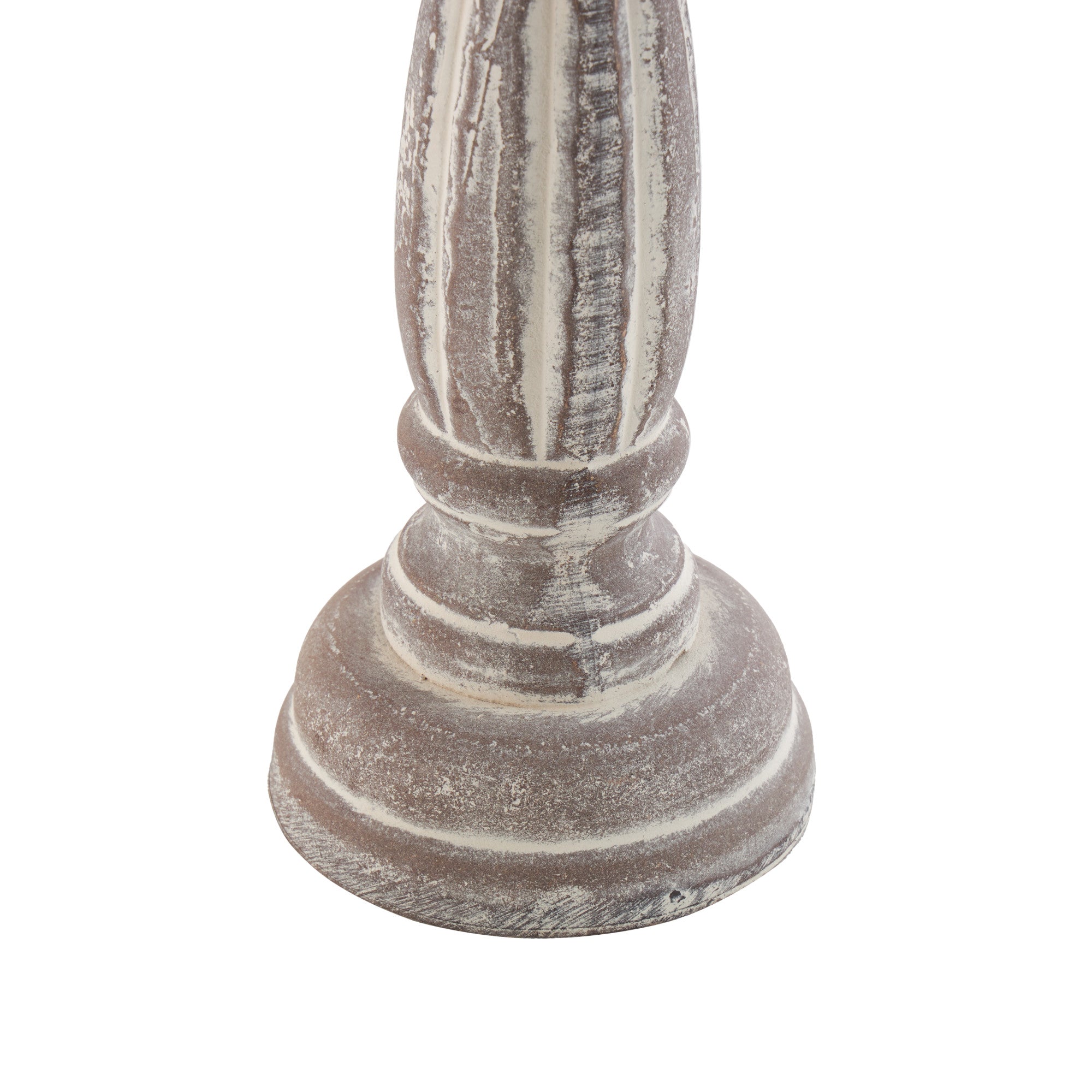 Set of 3 Wooden Distressed Turned Pillar Decorative Candle Holder