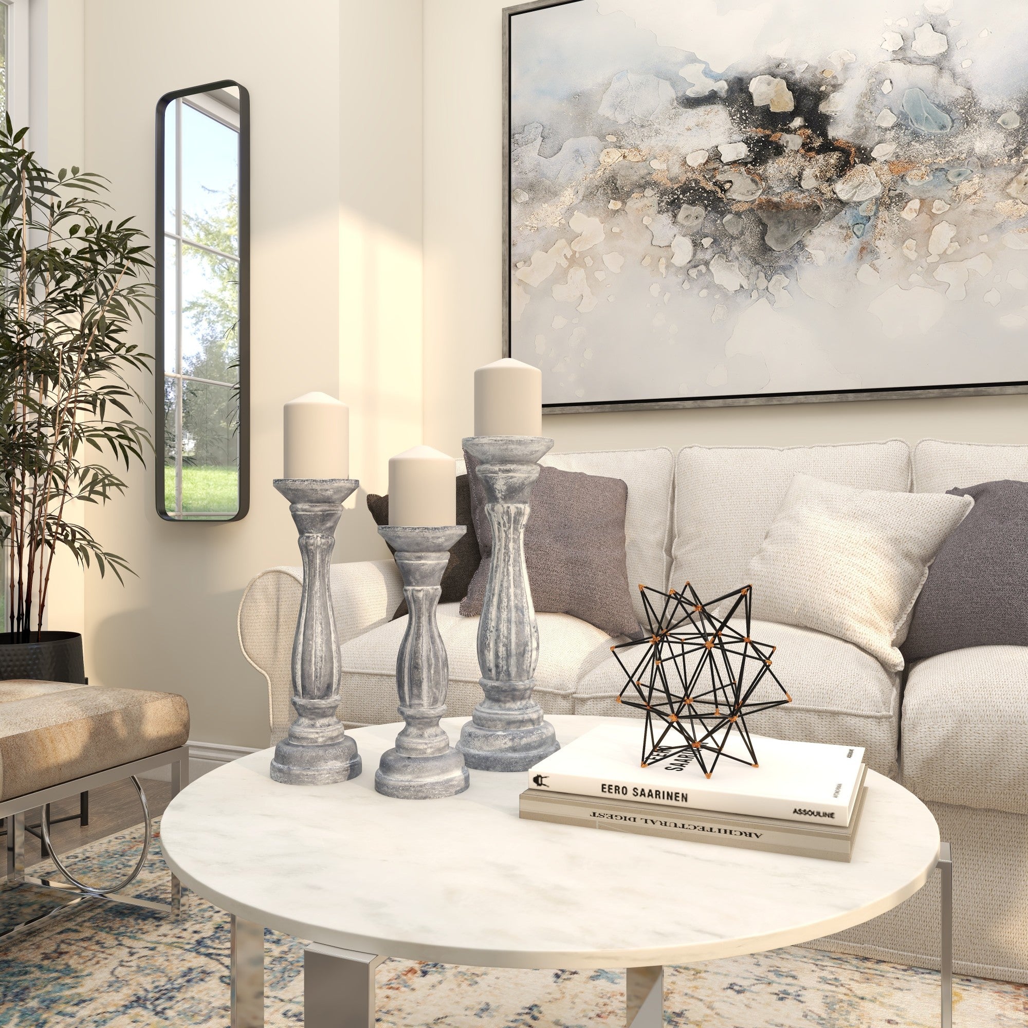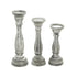 •This MDF set of 3 candle holders features varying heights, elongated bodies, and round tiered bases that add visual interest