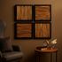 Set of 4 Abstract Brown Teak Wood Handmade Home Wall Decor with Horizontal Sticks and Black Frames