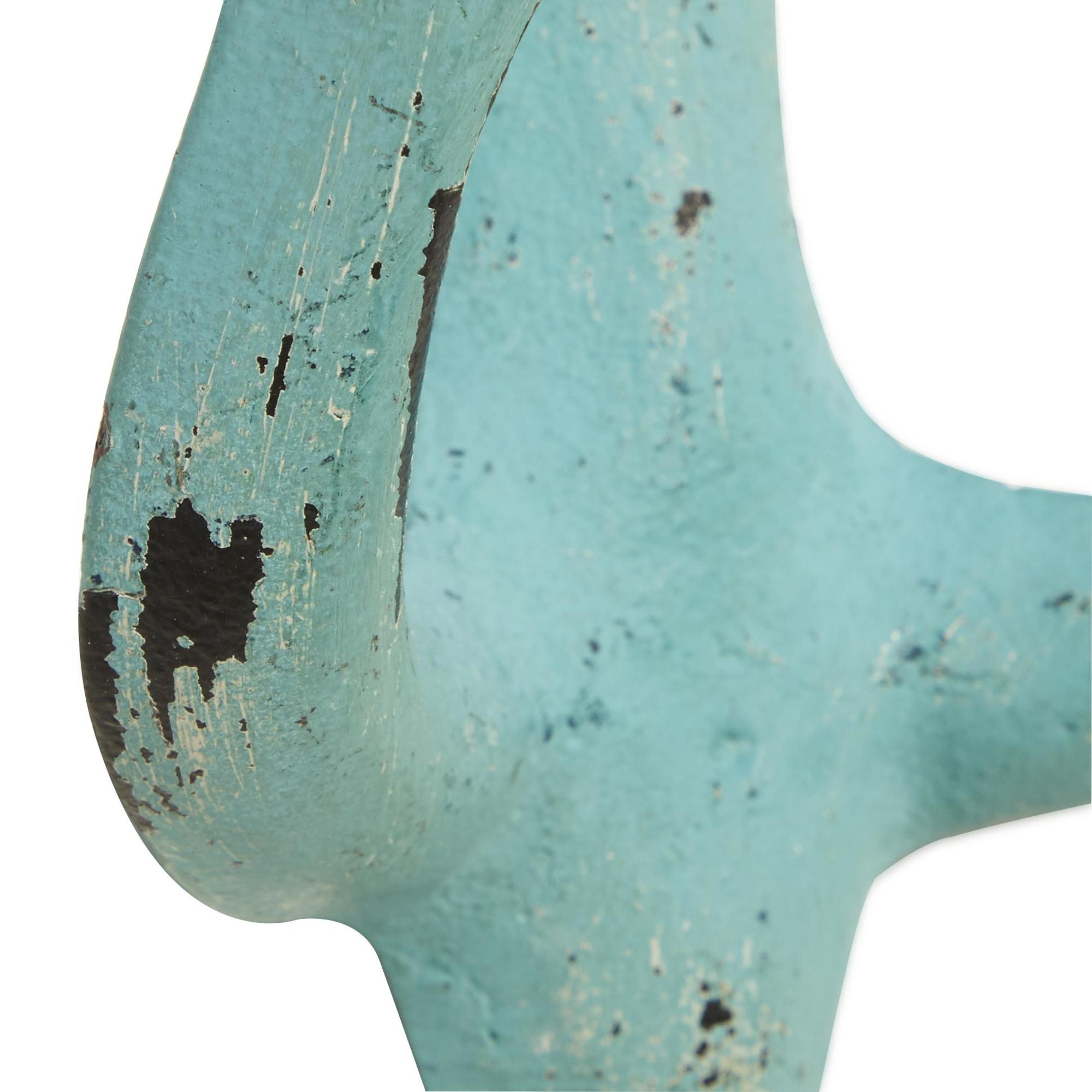 •The coastal set of 4 wall hooks for hanging is forged from iron to form anchor shapes with protruding hook sections and given a distressed multicolored finish