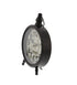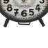 •The distressed clock for decor showcases round frames with spade-shaped hands, turned wood-inspired front leg stands, and ring hangers