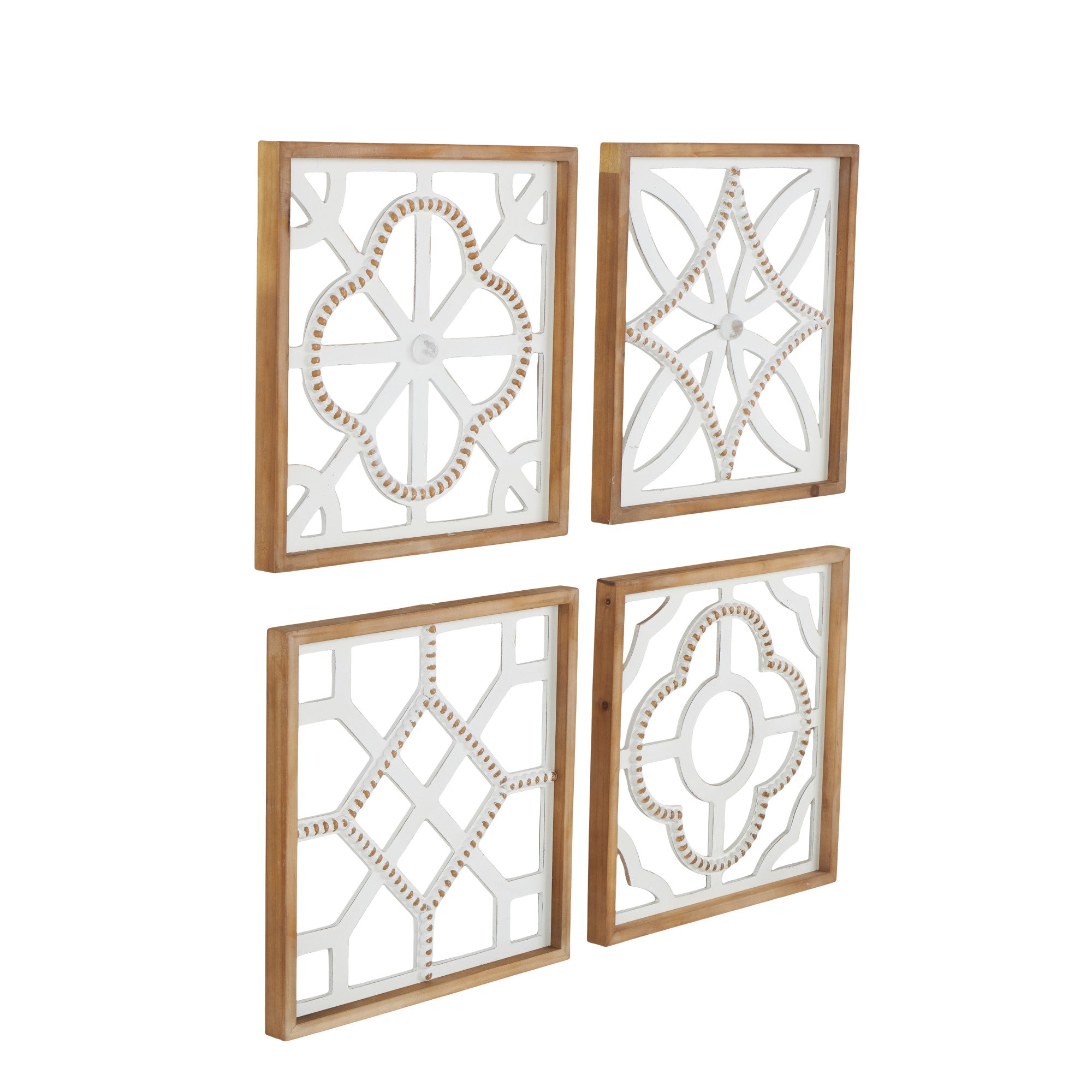 Set of 4 Geometric White Wood Beaded Home Wall Decor