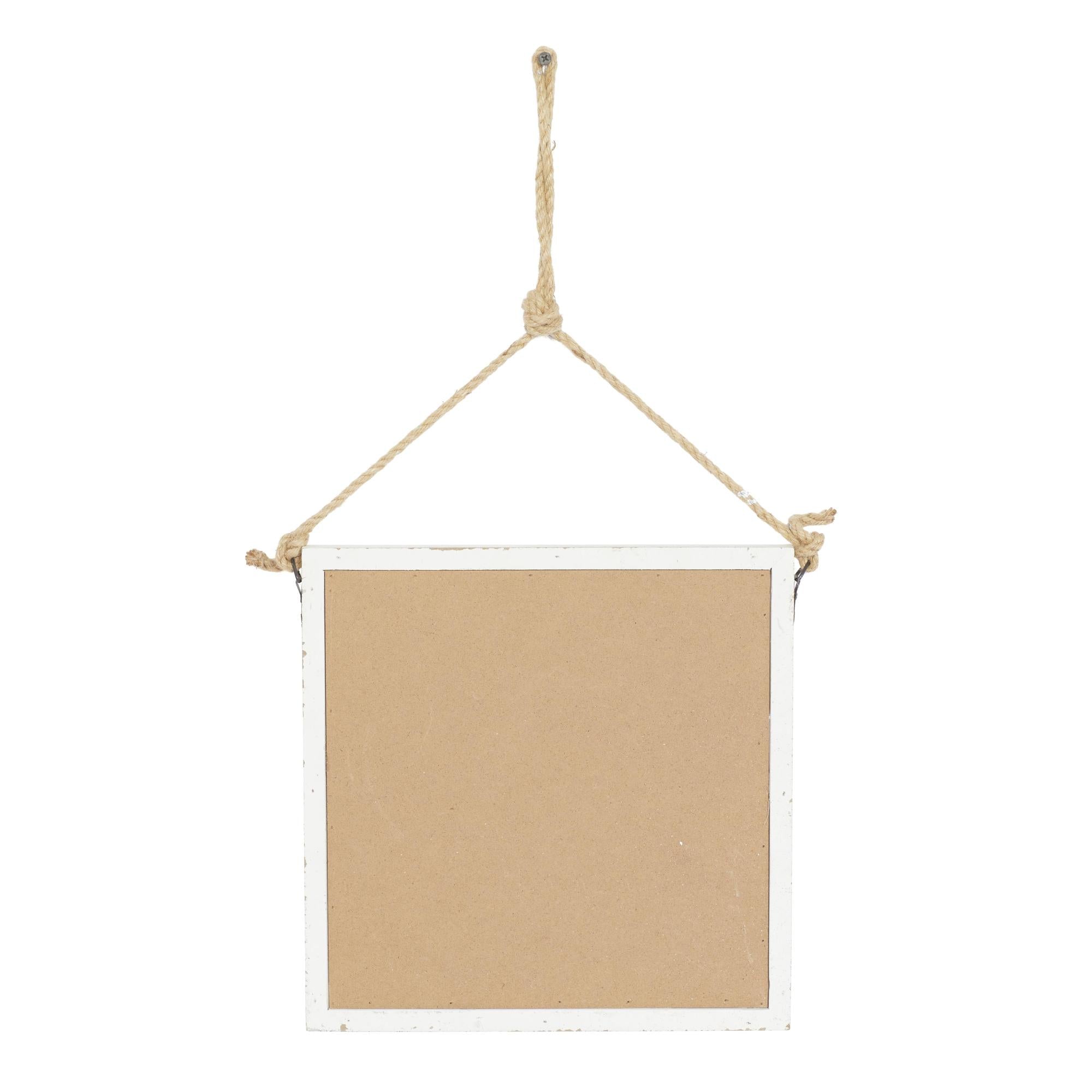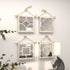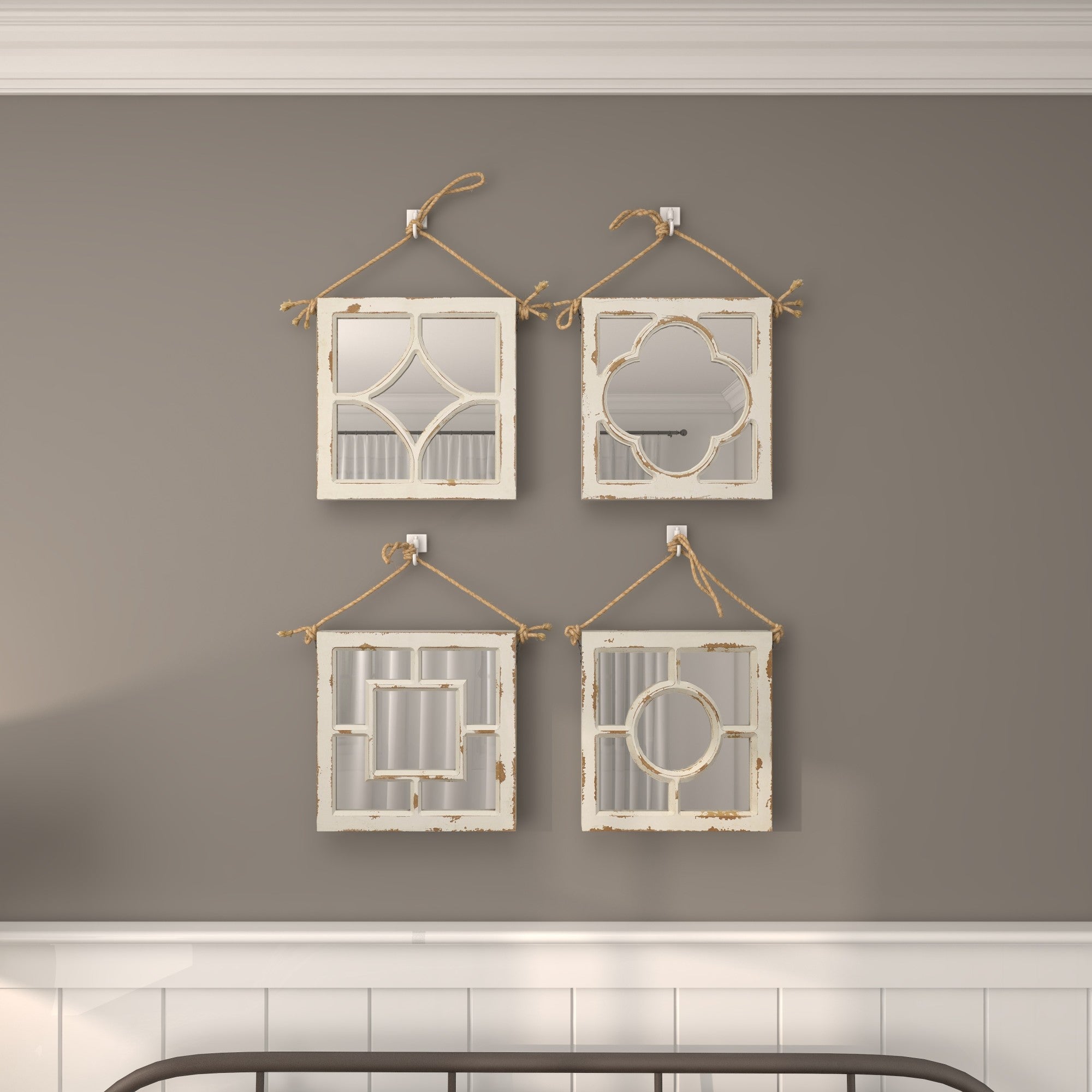 Set of 4 Geometric White Wood Distressed Small Square Room Wall Mirror with Jute Hanging Rope