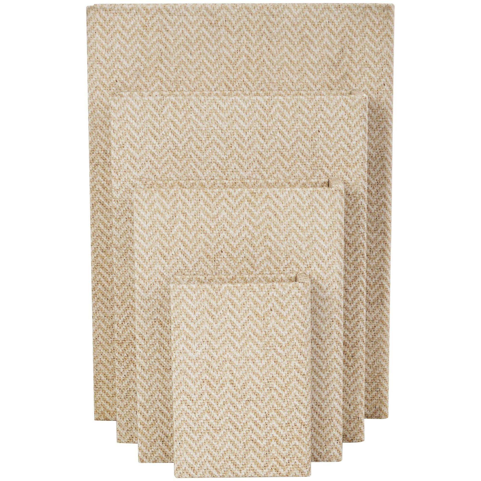 •Traditional set of 4 memory boxes is carved with MDF covered with a textured linen fabric, showcasing the meticulous craftsmanship involved in their creation