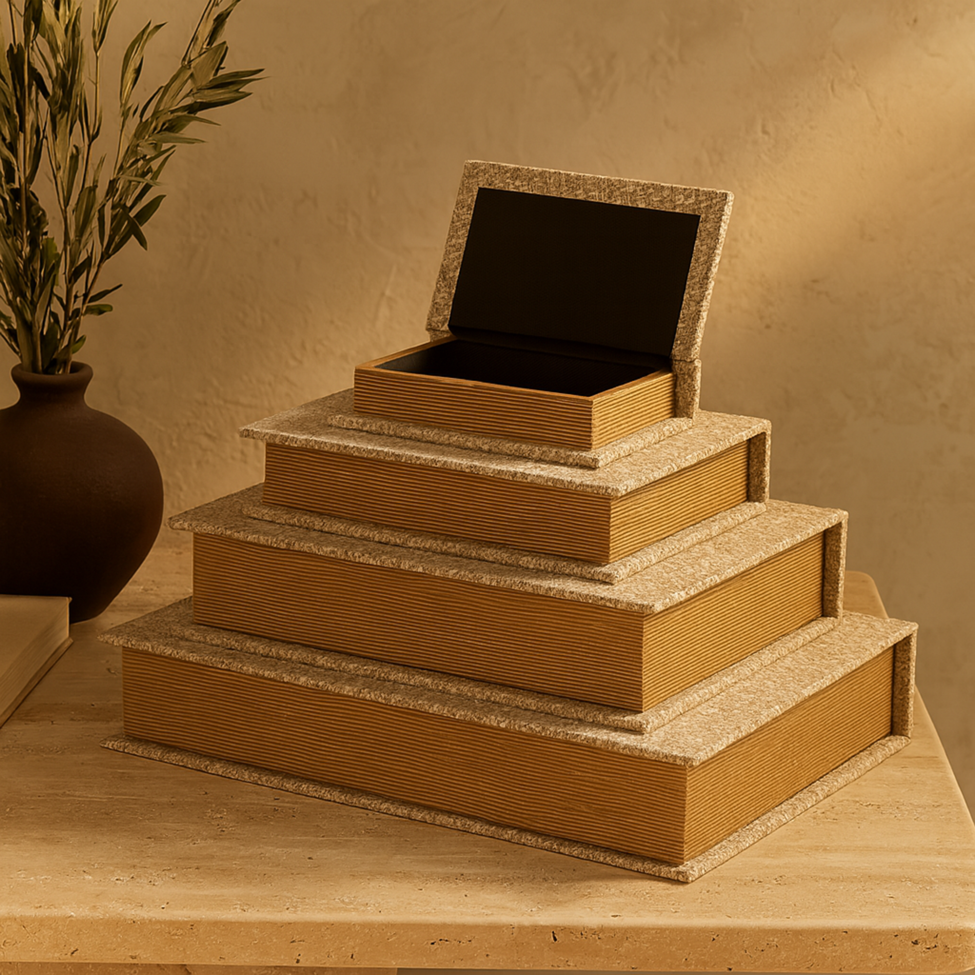 •This decorative box set is constructed from MDF wood and linen materials, ensuring both durability and an elegant aesthetic