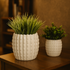 •Polished flower pot for indoor plants are shaped round and feature embossed rectangular shapes that adds a classic touch, making them suitable for any decor style