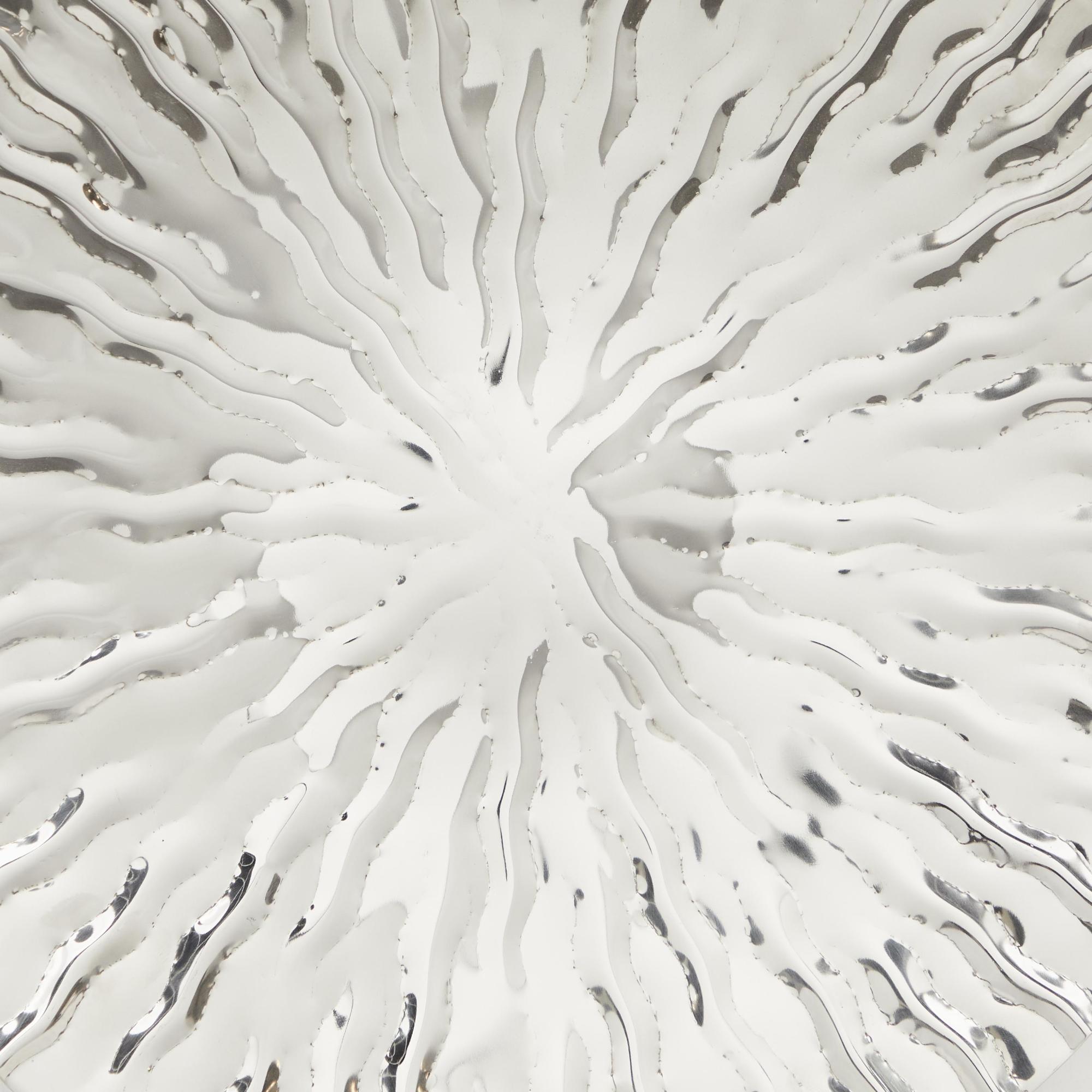 Create an excellent focal point on your walls paired with some cute accent tables, and level up your home with this amazing wall Decor. This plate set of 9 wall sculptures can make a bold and elegant statement in your living room or hallway, enhancing the overall aesthetic of your space. This item ships in 1 carton. Stainless steel wall decor makes a great gift for any occasion. Can be hung vertically using the d-rings; nails and screws not included. Suitable for indoor use only. This item ships fully assembled in one piece. Made in India. This stainless steel wall sculptures comes as a set of 9. Glam style.