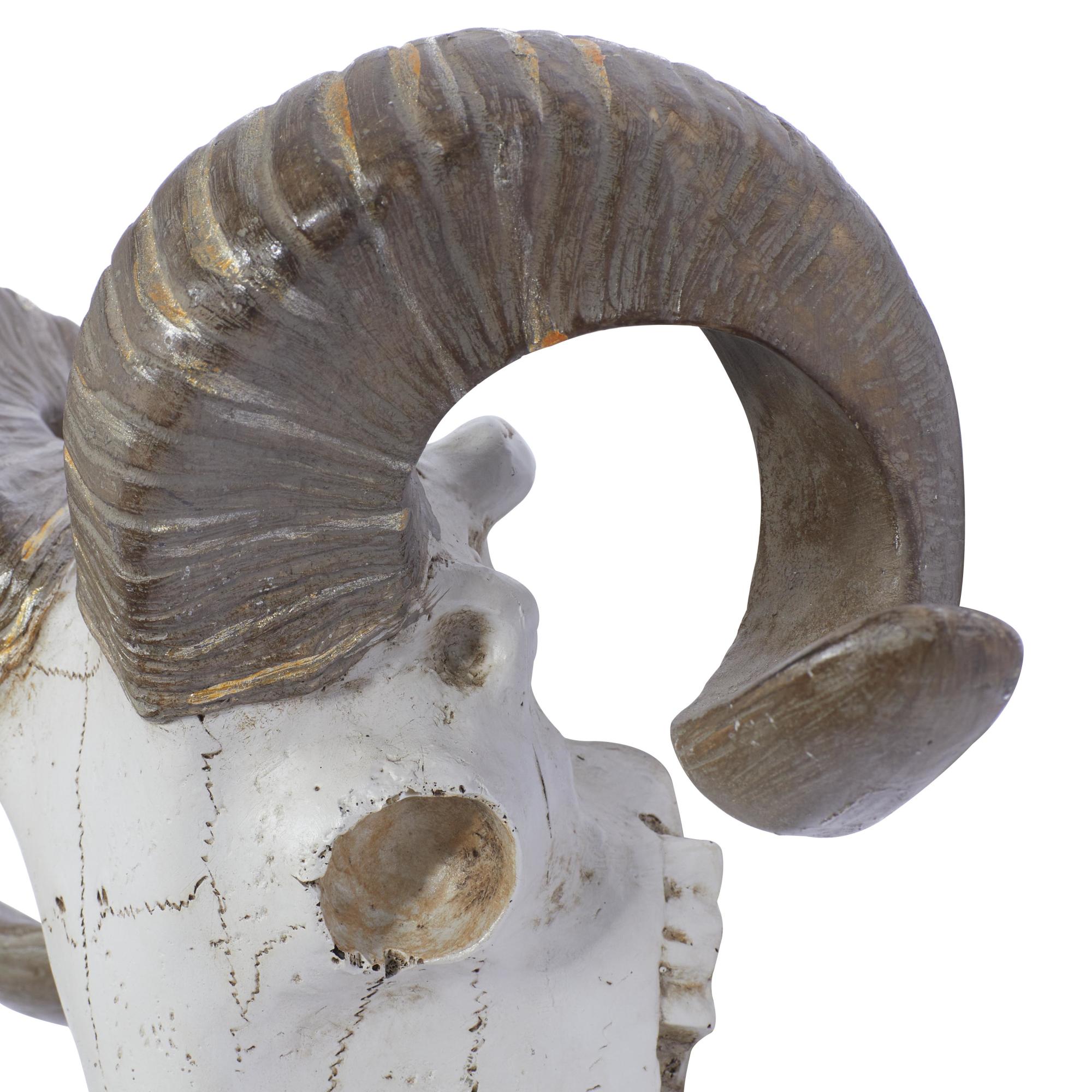 •This polystone wall decor features a meticulously sculpted sheep skull with horns, complete with crackled finishing touches and intricate details that lend it an impressively realistic look