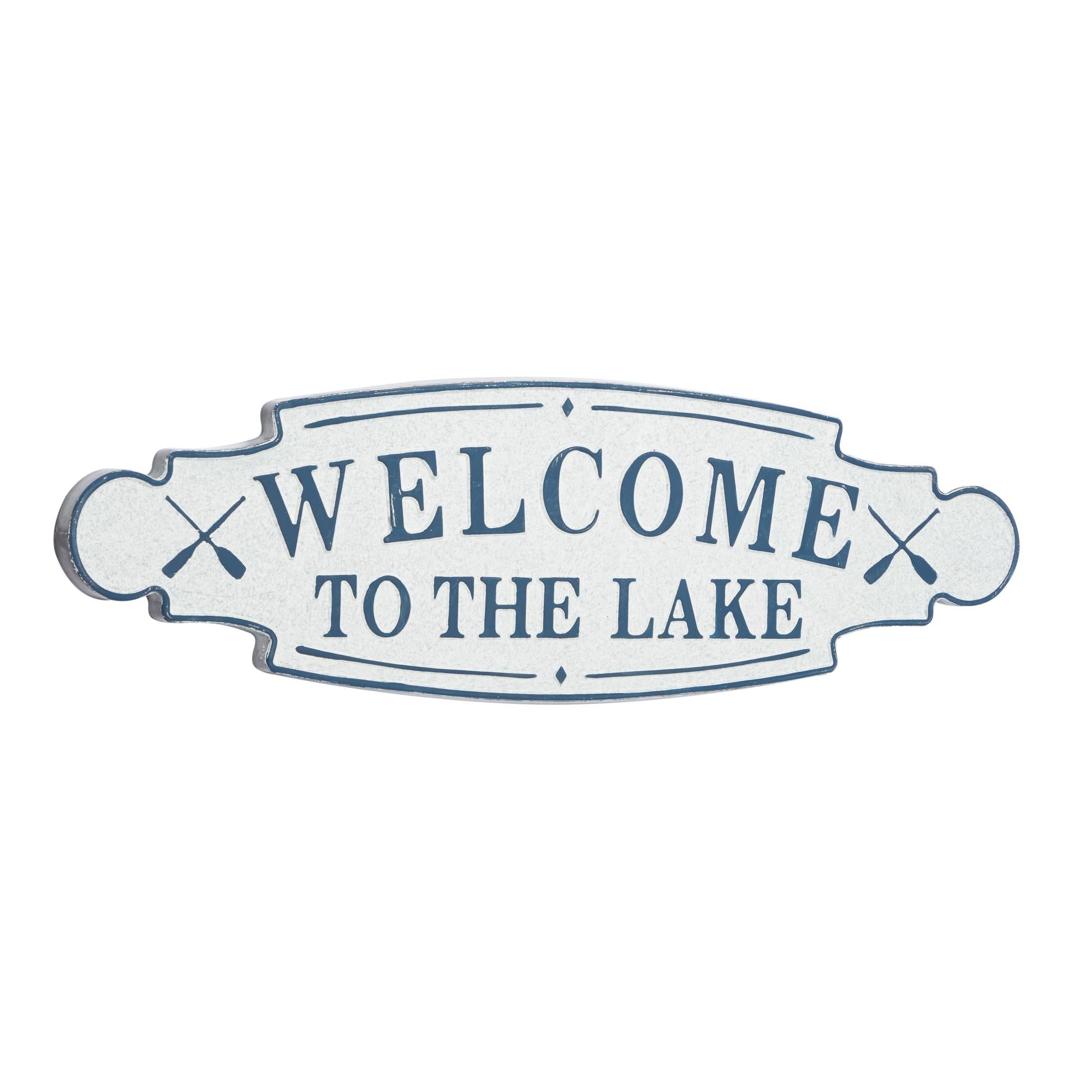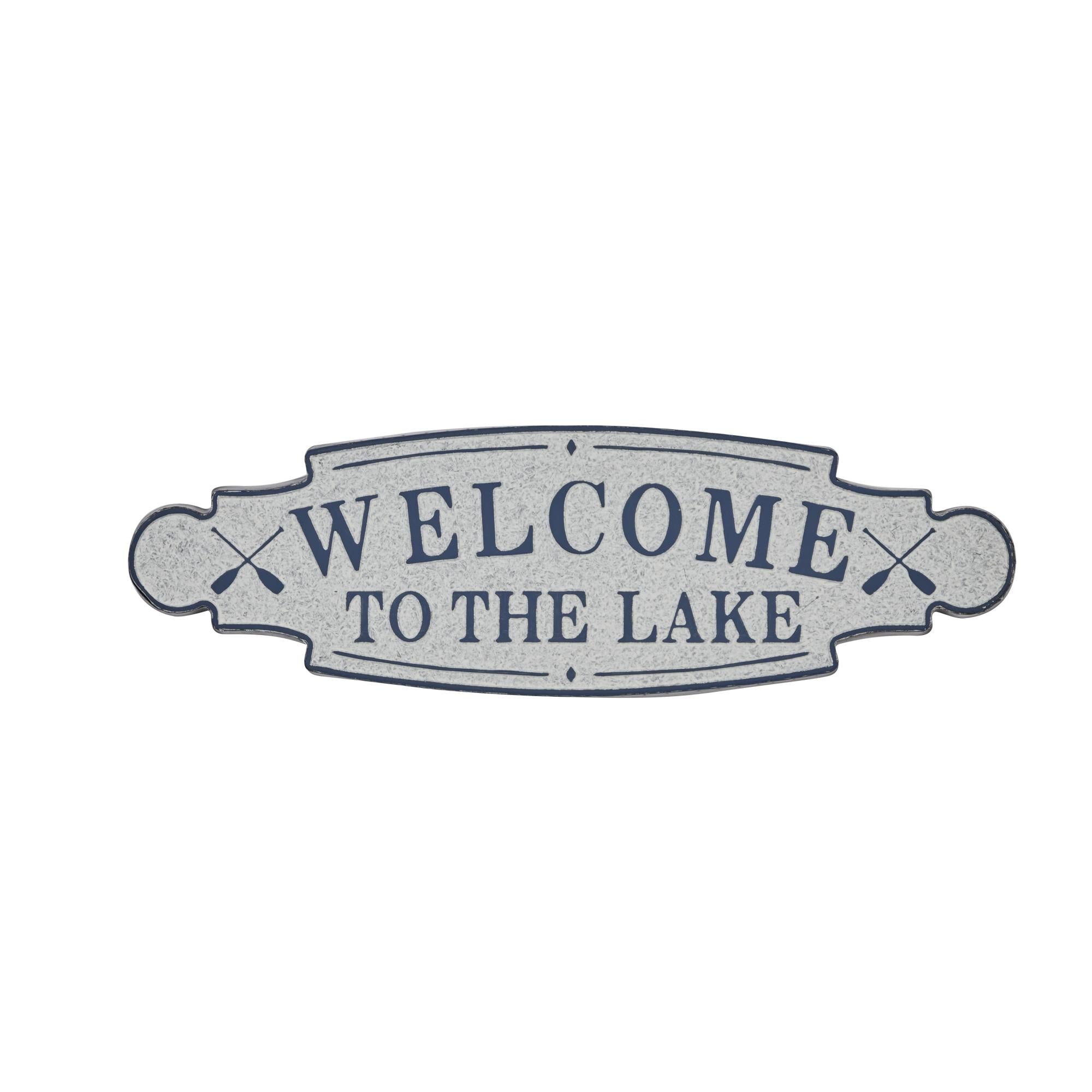 Sign Blue Metal Welcome To the Lake Home Wall Decor