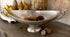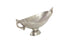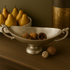 •Satin decorative bowl for kitchen counter displays and oval shape with elaborate scrolled handles and a minimalist curved base