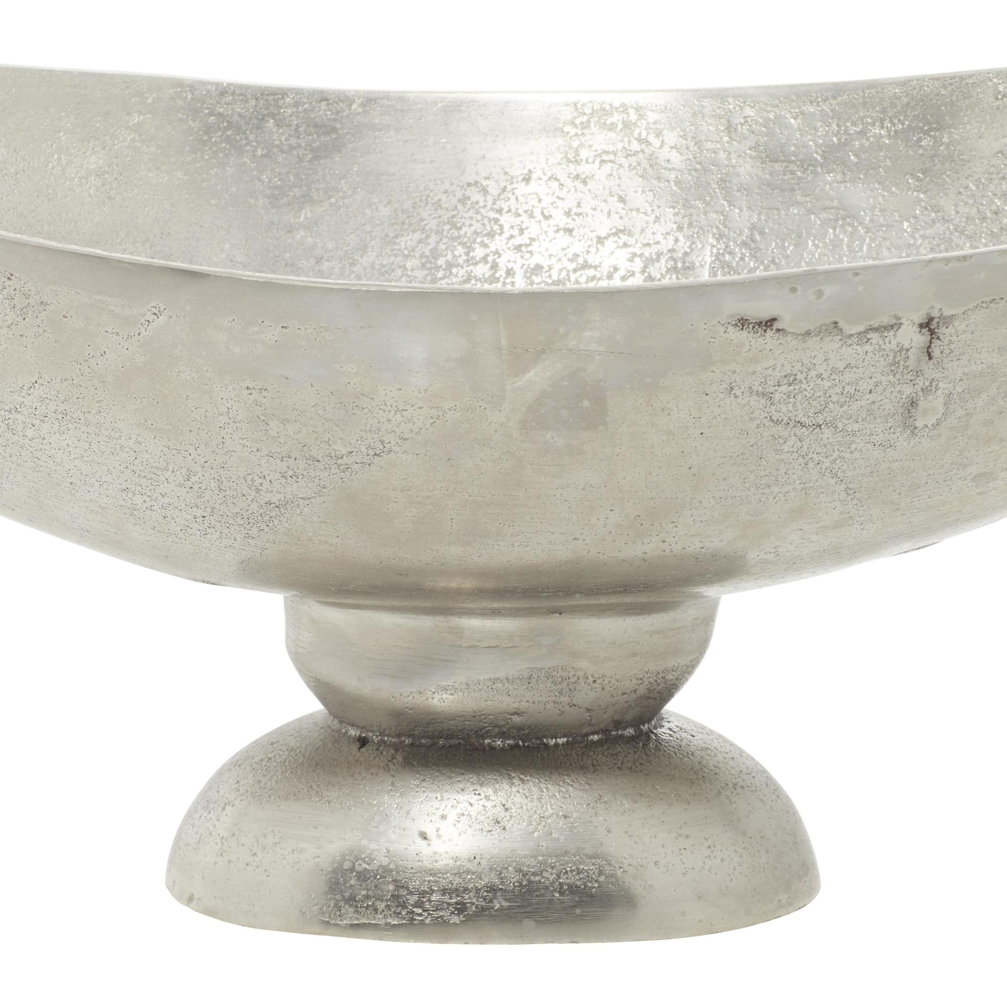 The perfect compact storage for your belongings while keeping your surface space protected. Give your surface space a finishing touch with these beautifully crafted decorative bowls. Elevate everyday organization with this catch all for entryway, perfect for your console table, coffee table, or kitchen counter. Designed with felt or rubber stoppers at the base that prevent scratching furniture and table tops, as well as sliding around. This item ships in 1 carton. Please note that this item is for decorative purposes only and is not food safe. This coffee table bowl decor features a raised base that acts as a pedestal, elegantly showcasing your decorative arrangements. Aluminum decorative bowl makes a great gift for any occasion. Suitable for indoor use only. This item ships fully assembled in one piece. Made in India. This is a single display bowl. Traditional style.