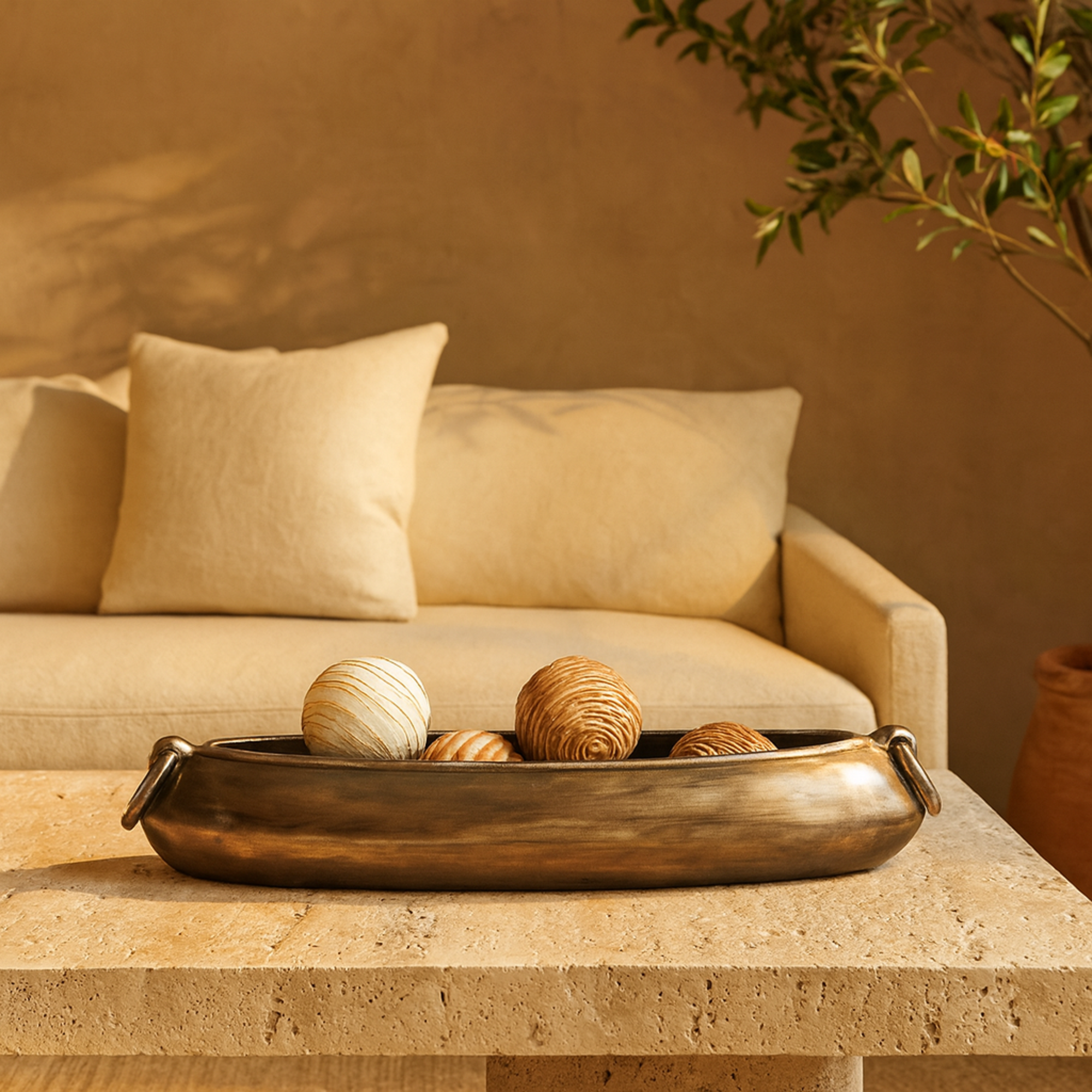 •The large decorative bowl is crafted with solid aluminum, ensuring durability and a sleek appearance