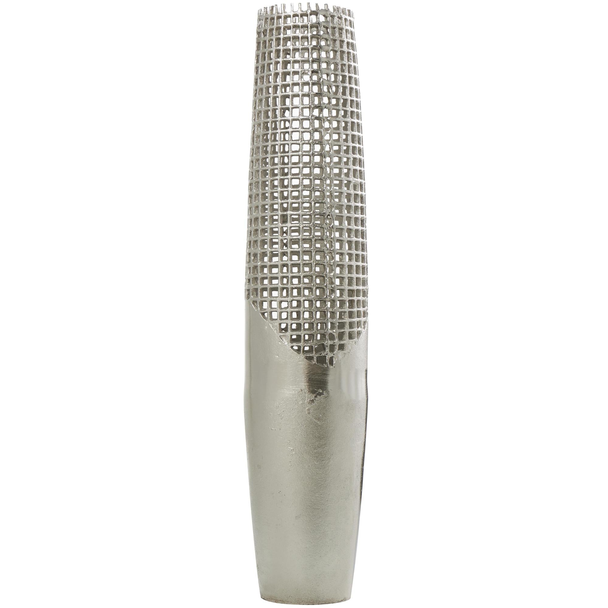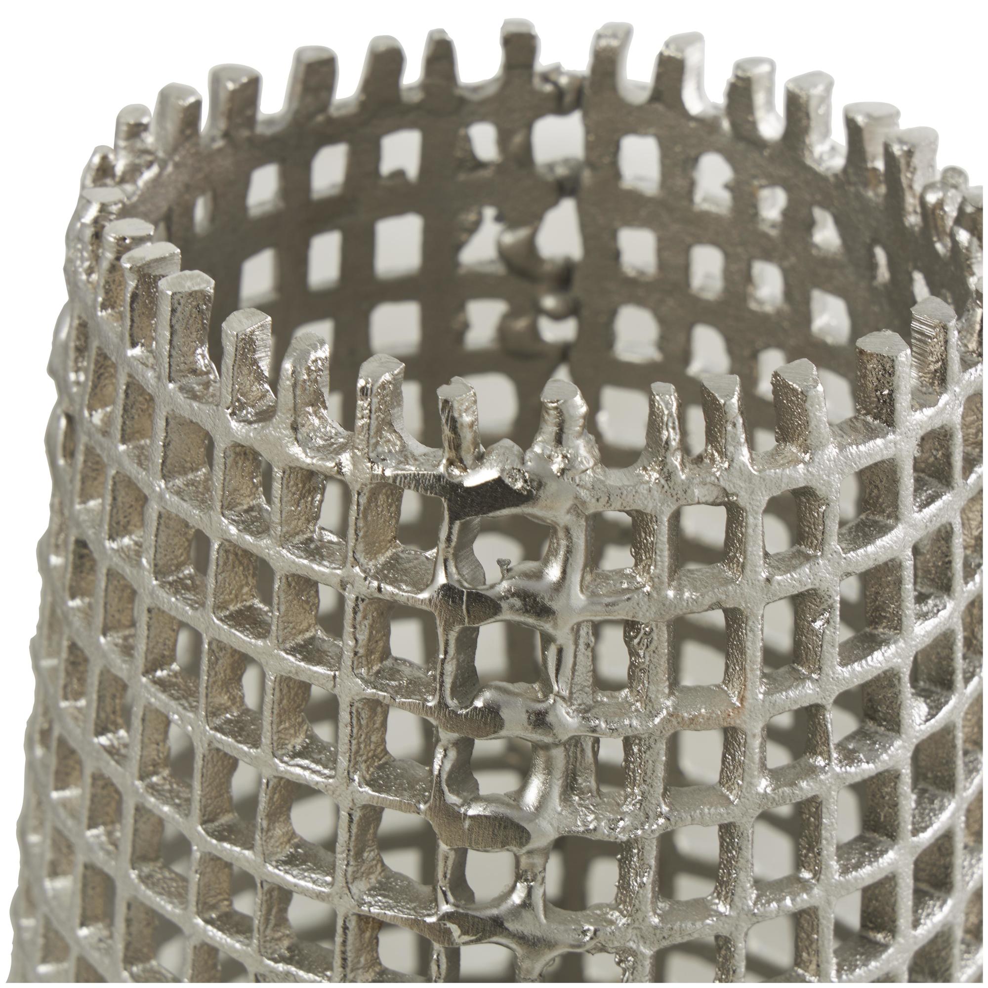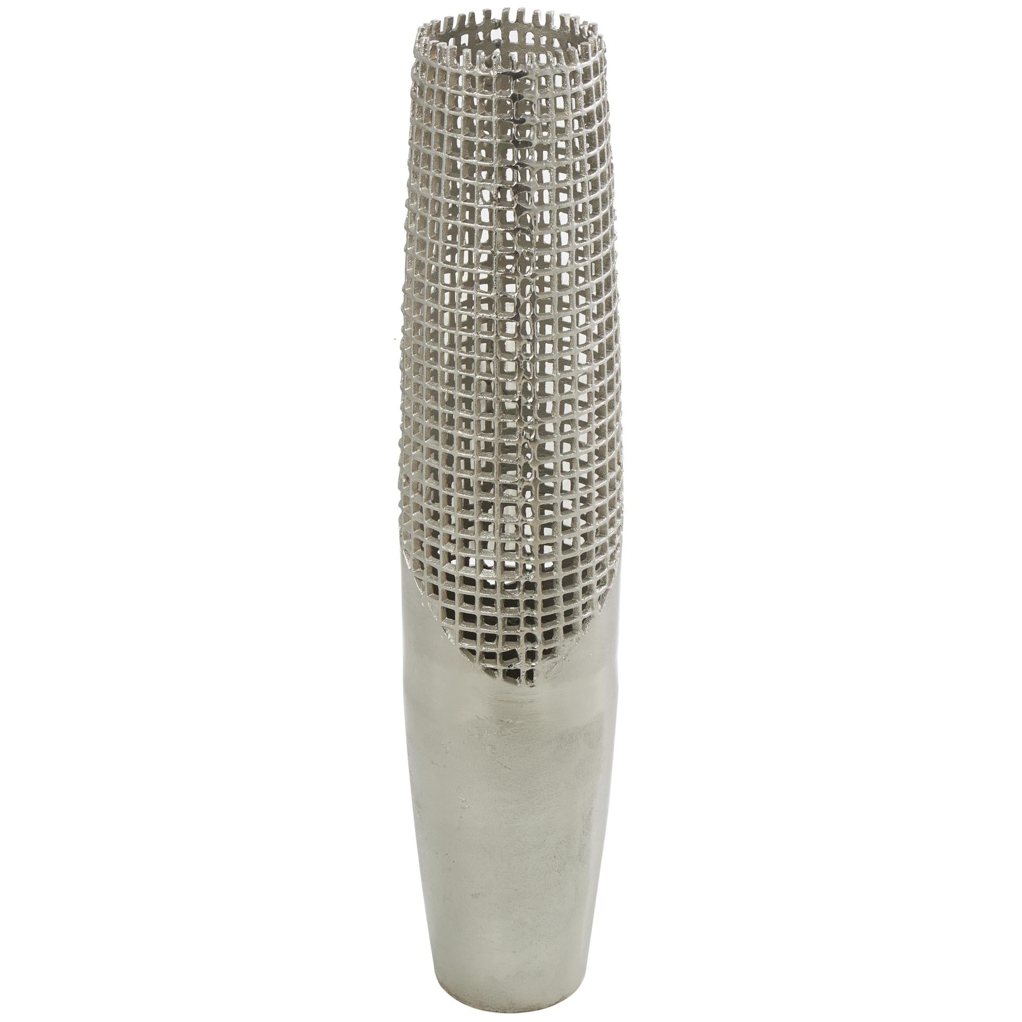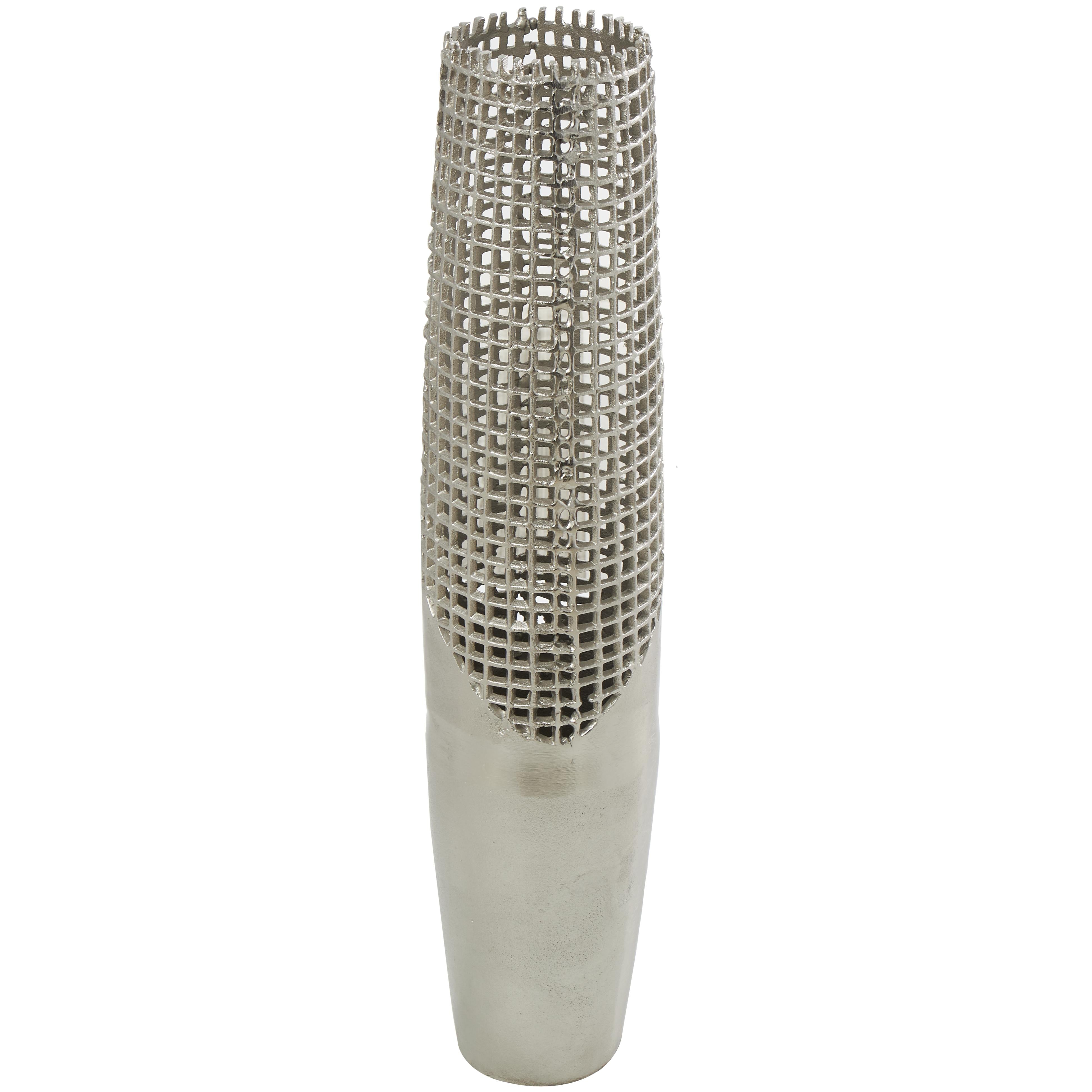 Silver Aluminum Metal Tall Grid Inspired Decorative Vase with Open Frame Design