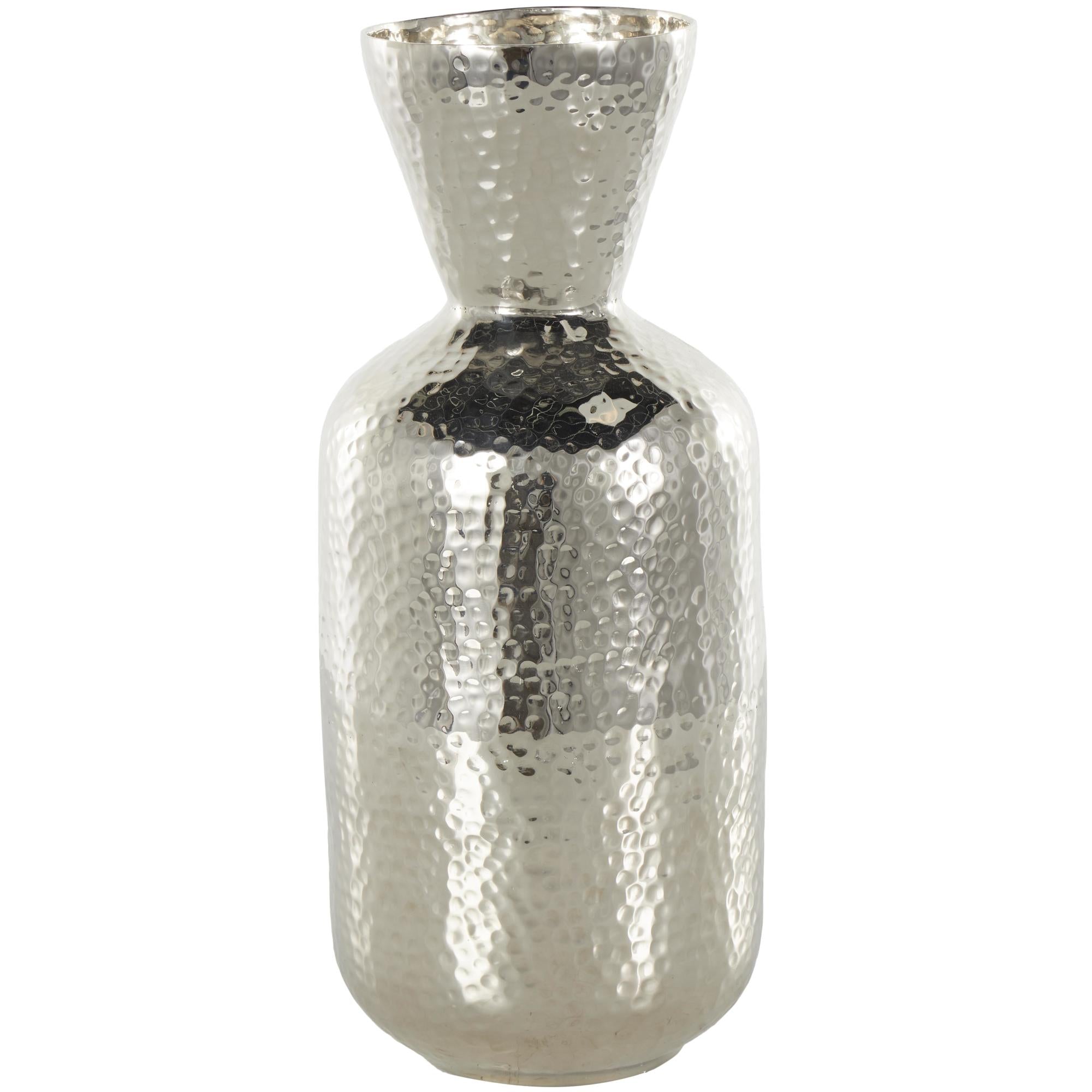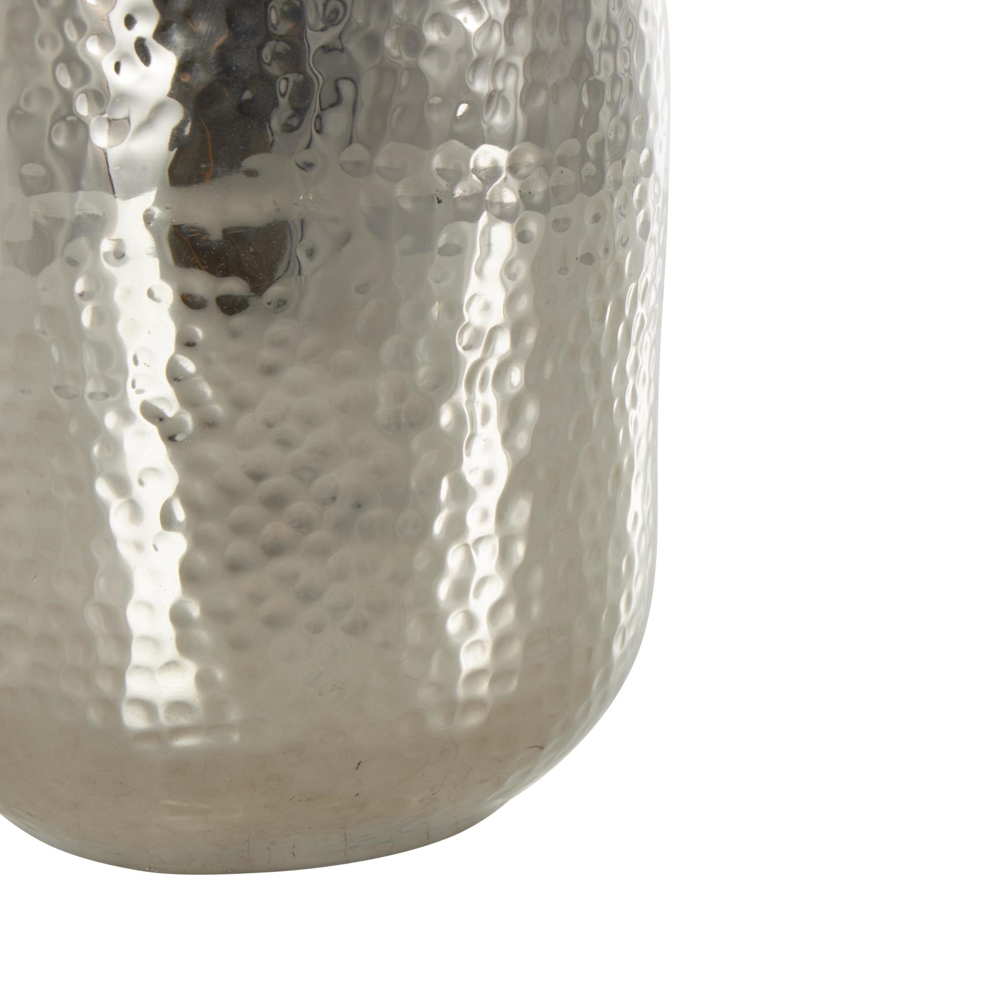 Silver Aluminum Metal Hammered Decorative Vase with Cone Shaped Opening
