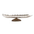 •This aluminum tray features a canoe-inspired design with a zigzag rim and a solid wood base stand, creating a striking contrast