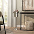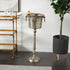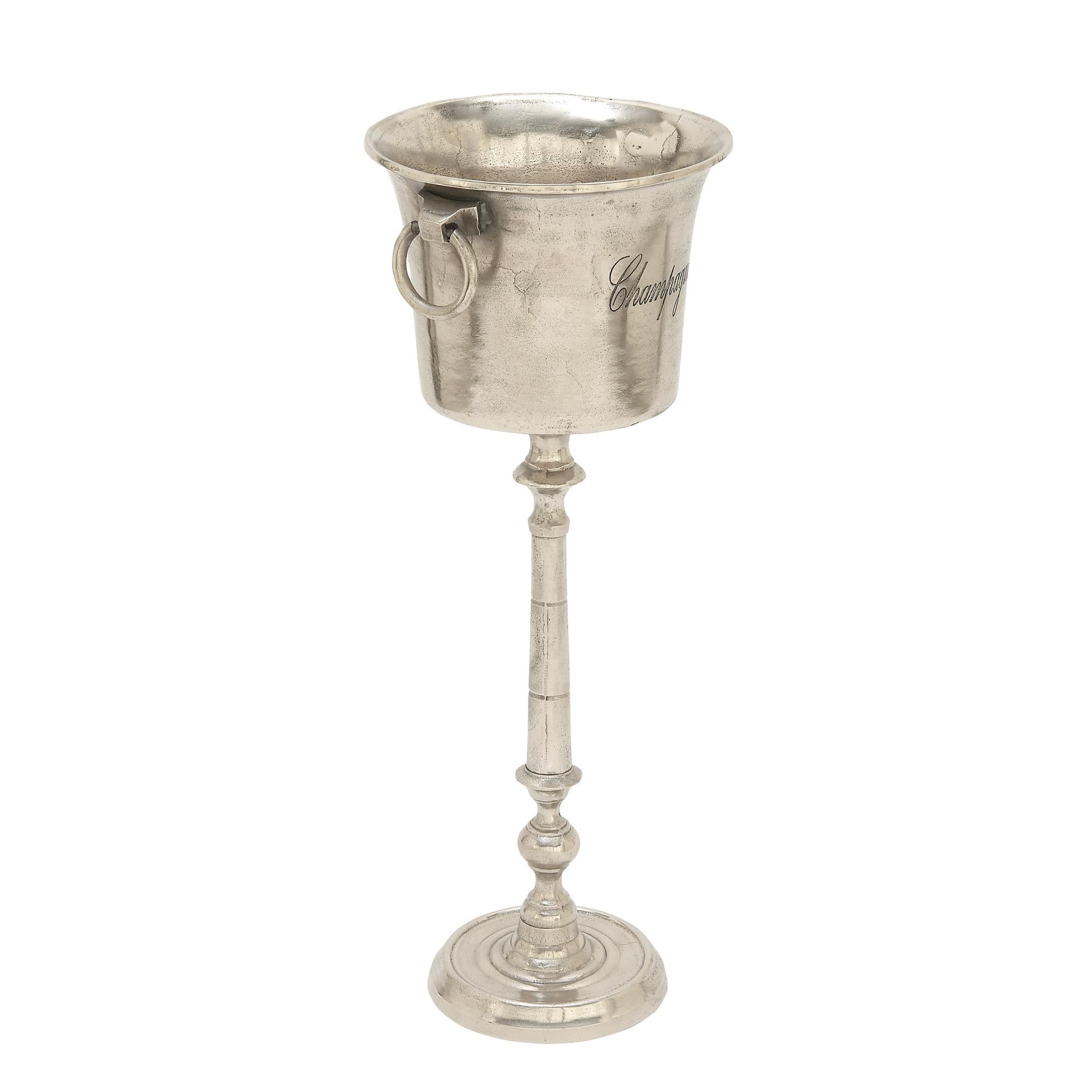•Satin beverage bucket showcases a smooth round, bowl-like shape with ring handles, supported by a tall, fluted stand with a circular, tiered base
