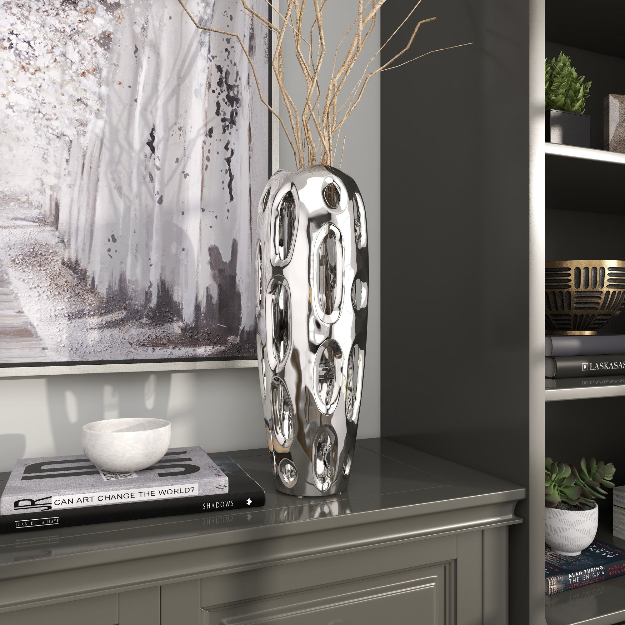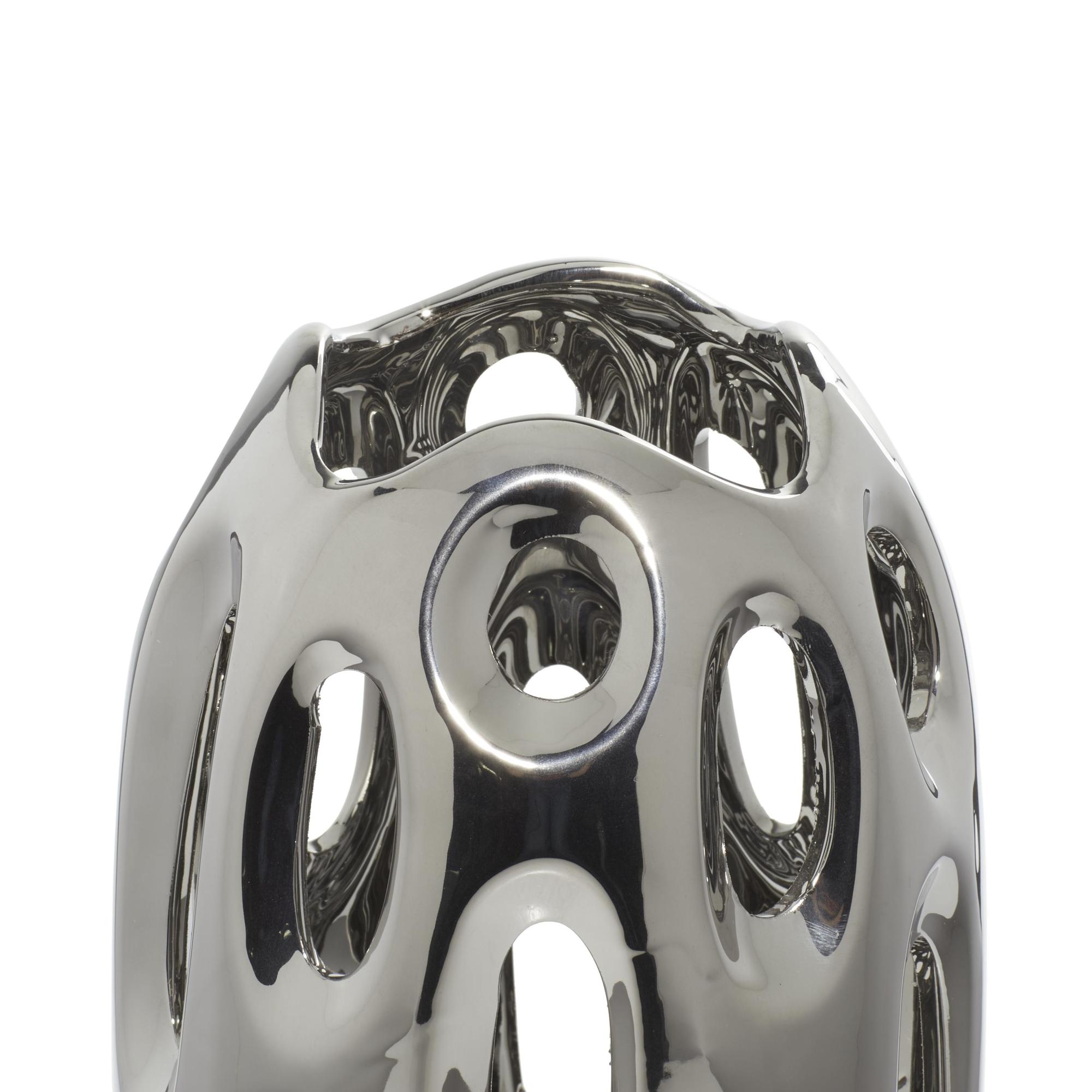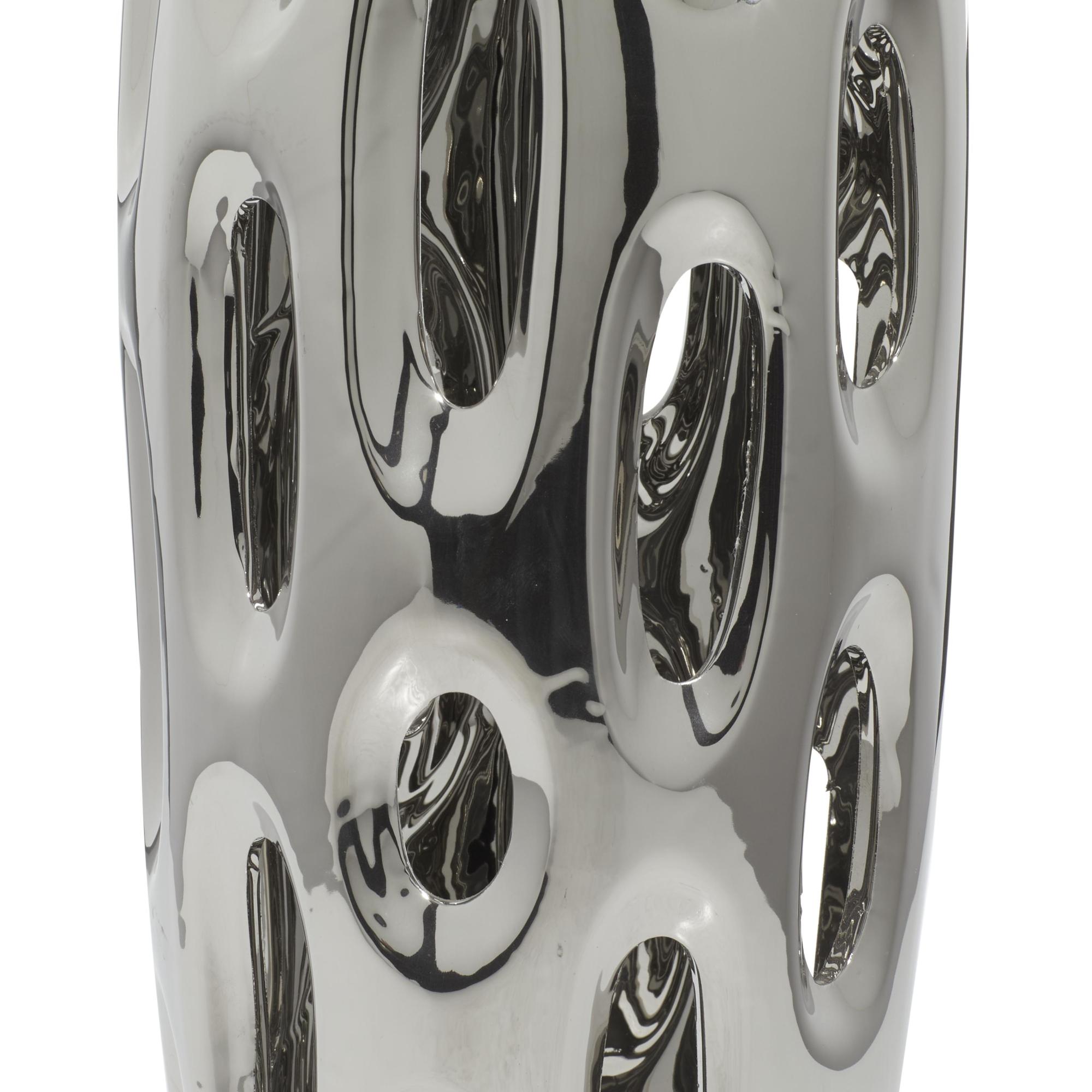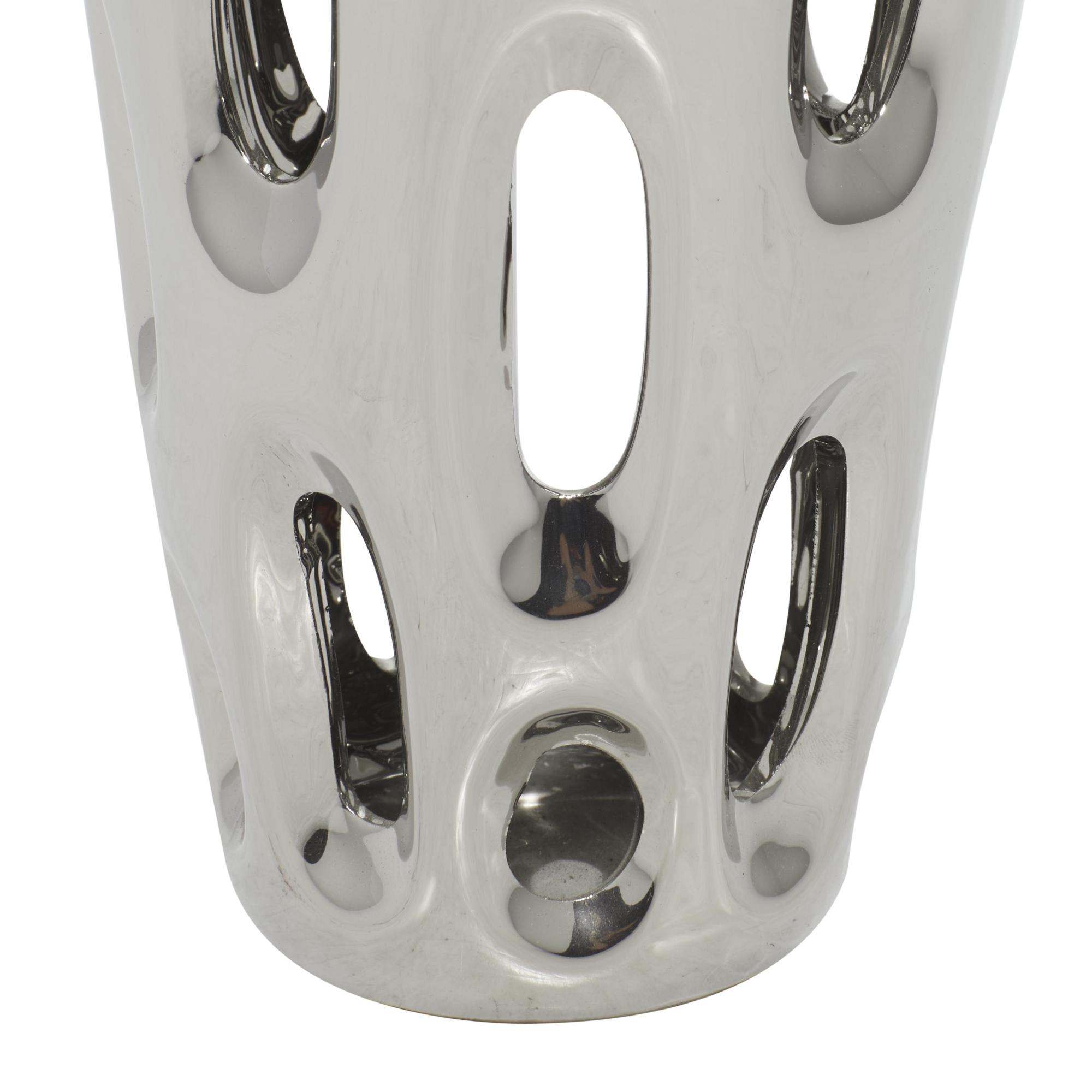 Silver Ceramic Decorative Vase with Cut Out Designs