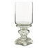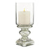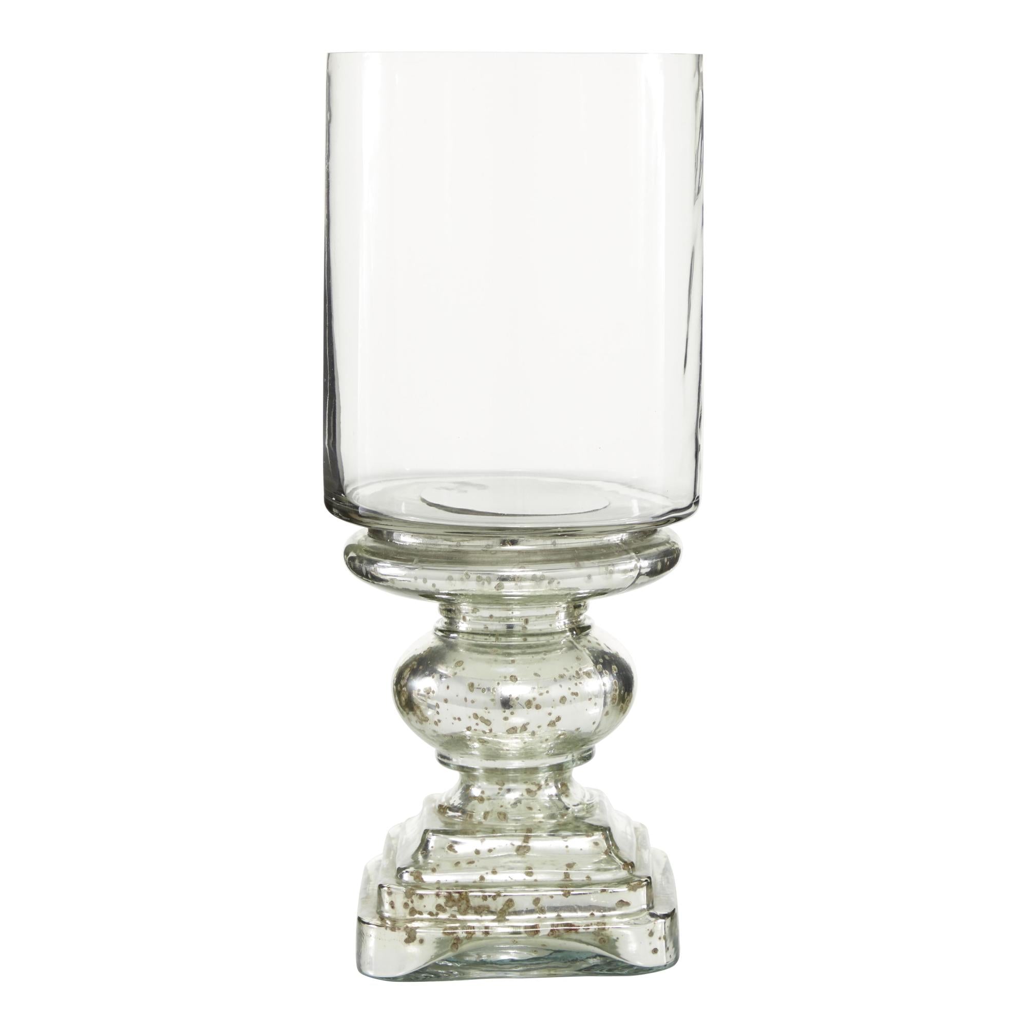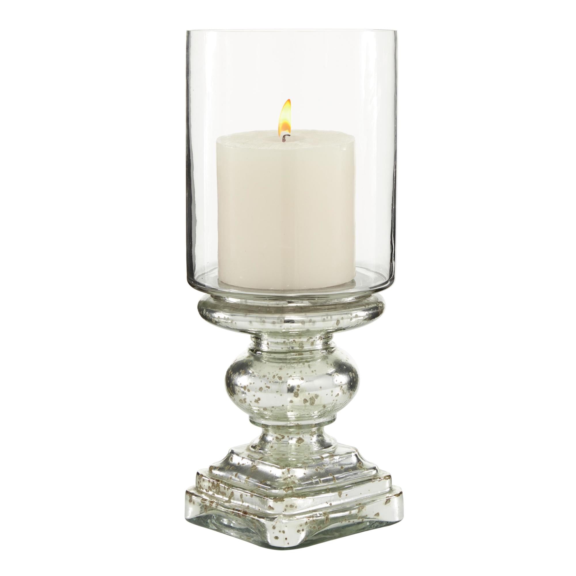 •The traditional hurricane candle holder features a molded glass stand that is given a faux mercury finish and furnished with a glass holder on top