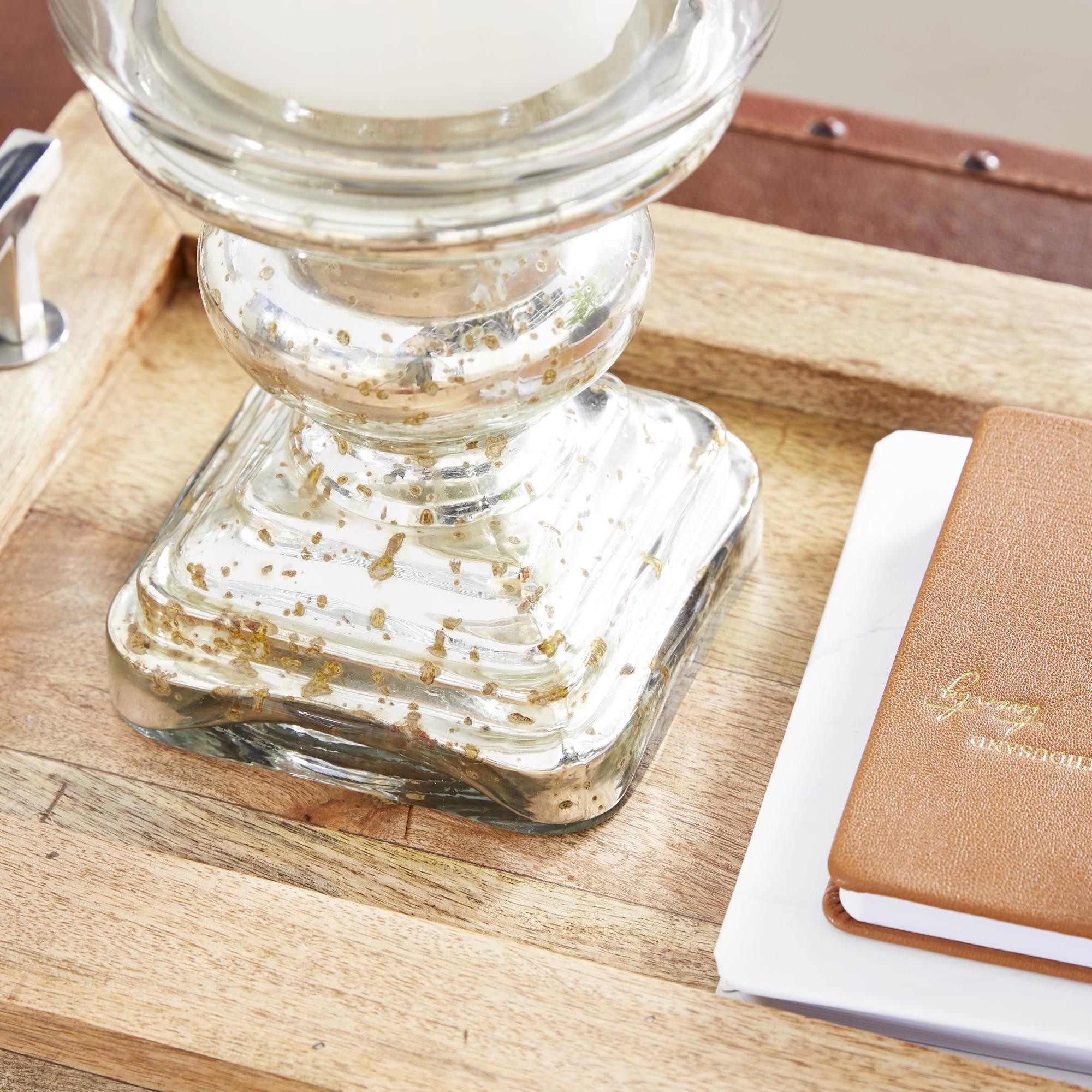 Silver Glass Handmade Turned Style Pillar Room Hurricane Lamp with Faux Mercury Glass Finish